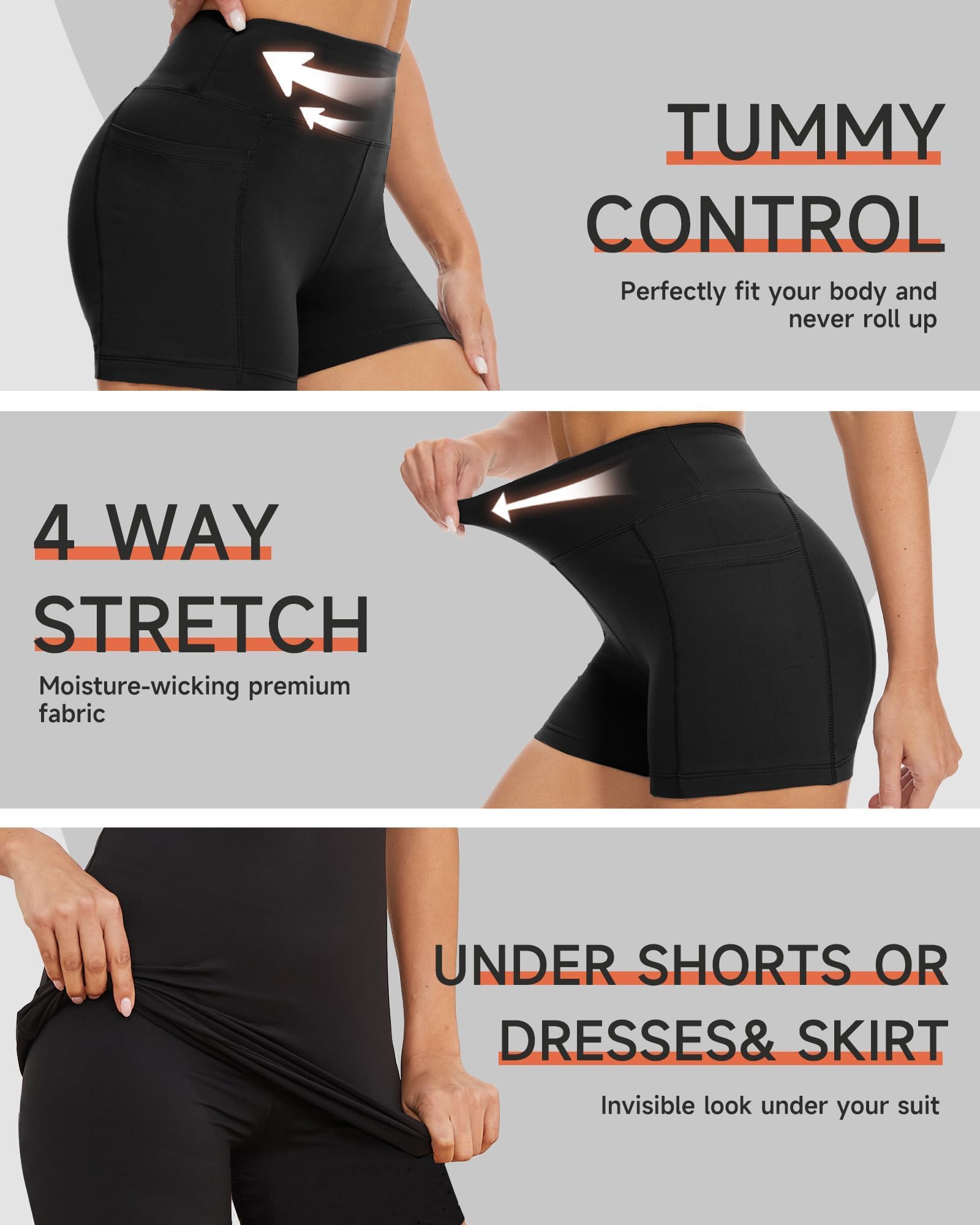 【Non See Through】This biker shorts for women are made of 4-way stretch and non-see-through fabric, which provides maximum squat proof and protection during your daily movement. The perfect seams minimize rubbing, allowing you to wear them without worrying about the stitching breaks, and you’ll feel comfy all the time.