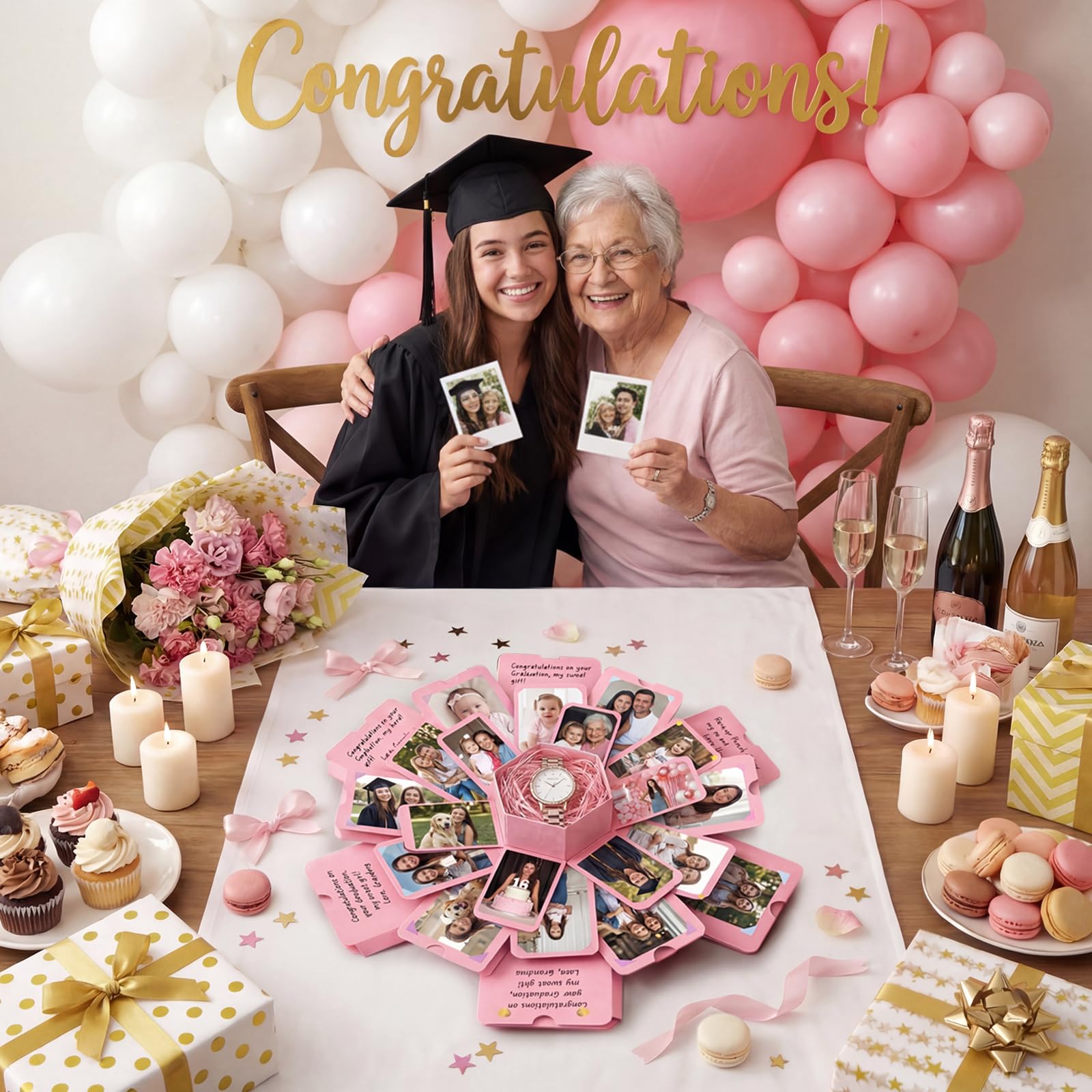 Multi-Scene Usage——This DIY explosion box is perfect for a variety of special occasions, whether it’s a birthday, anniversary, Valentine’s Day, Mother’s Day, Christmas, graduation ceremony, or baby shower. It seamlessly fits into any gift-giving scenario, making it an ideal gift box for couples, family, and friends. In addition, it can also serve as a creative photo album to capture travel memories, wedding moments, family gatherings, and other significant events