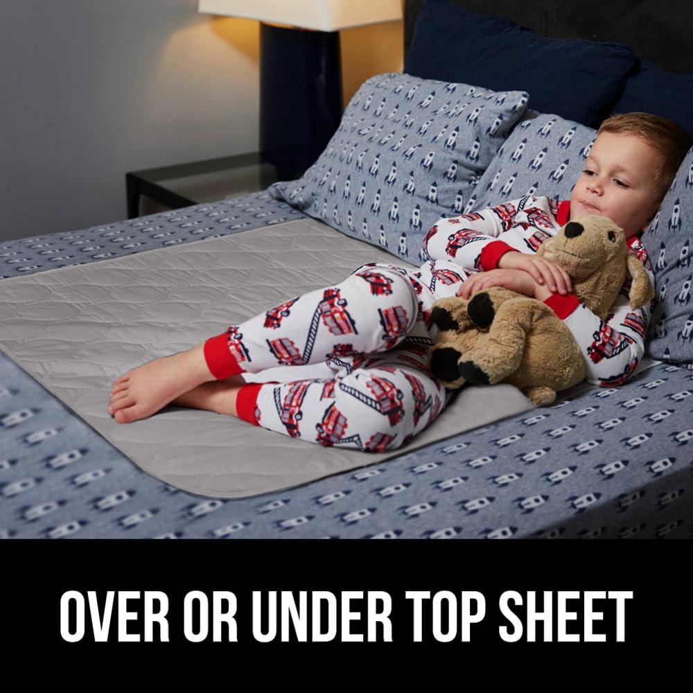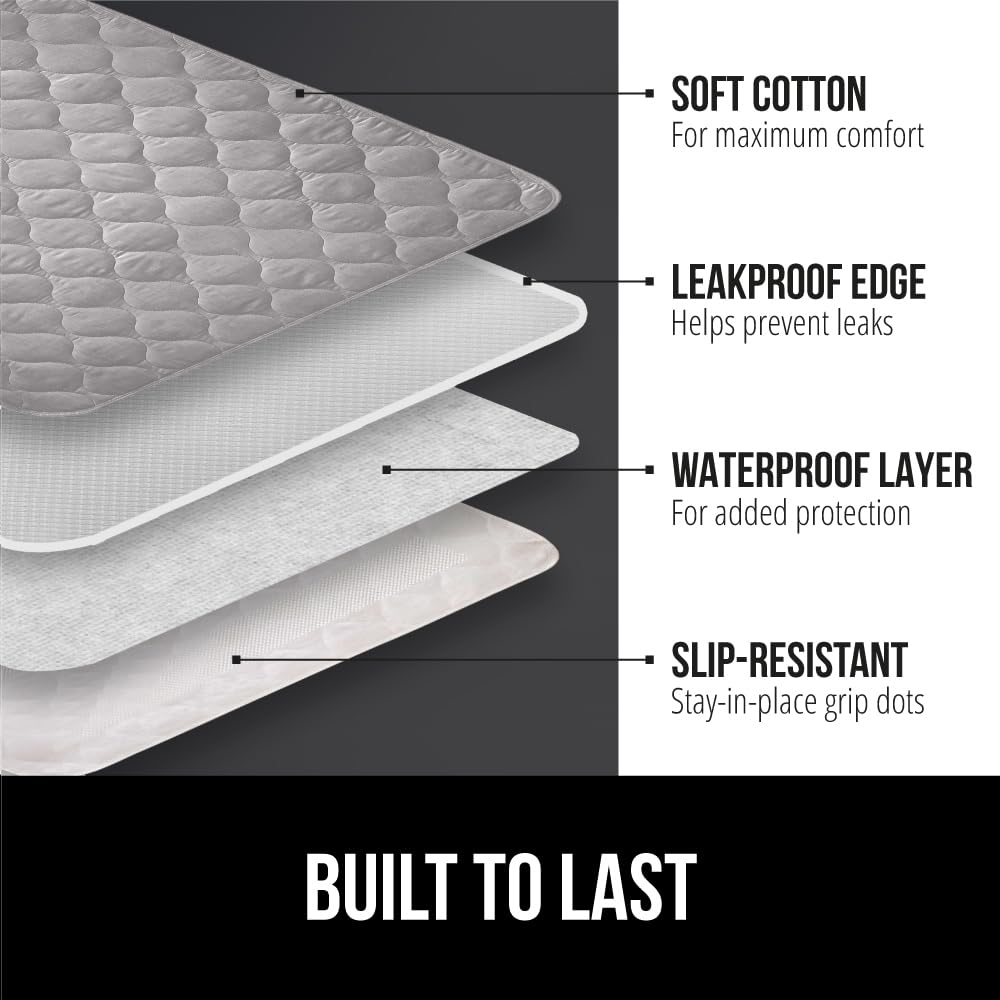 LEAK PROOF PROTECTION Our toddler mattress bed pads can hold up to 8 cups of liquid, much more than others; moisture is quickly absorbed into the underpad and then dispersed throughout, helping to prevent leakage; also features leak proof edges, resilient inner layers and a thick waterproof barrier to offer additional, unparalleled protection that will give you the comfort and security you need SLIP RESISTANT BACKING featuring our exclusive non skid and non adhesive backing, the pad is designed to stay in place overnight; no more uncomfortable adjusting, even for the most active sleepers BETTER CHOICE FOR YOUR HOME save money with our reusable pad that has been tested up to 300 washes; no more expensive and wasteful disposable pads; rest assured, our pads have been given the Confidence in Textiles label, and have been tested for harmful substances according to OEKO-TEX Standard 100; perfect for children, adults and pets THICK QUILTED COTTON TOP LAYER the unique 4 layer design is complete with a super soft quilted top that feels great; soft and comfortable; pad is not bulky or too thick, so it cannot be felt while sleeping OVER OR UNDER TOP SHEET whether you choose to sleep with the pad on top of your mattress or over your top sheet, the pad is designed to be effective and comfortable