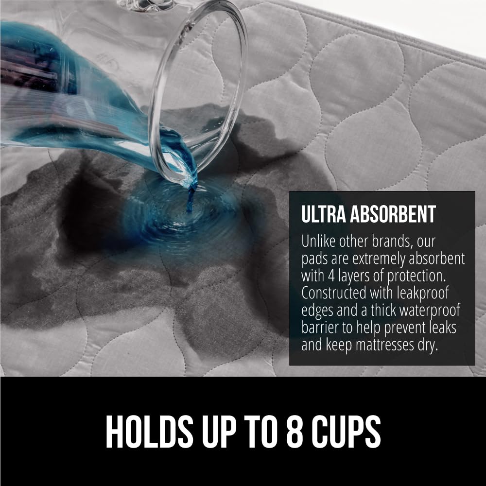 LEAK PROOF PROTECTION: 1 pack; our pad can hold up to 8 cups of liquid, much more than others; moisture is quickly absorbed into the pad and then dispersed throughout, helping to prevent leakage; also features leak proof edges, resilient inner layers and a thick waterproof barrier to offer additional, unparalleled protection that will give you the comfort and security you need