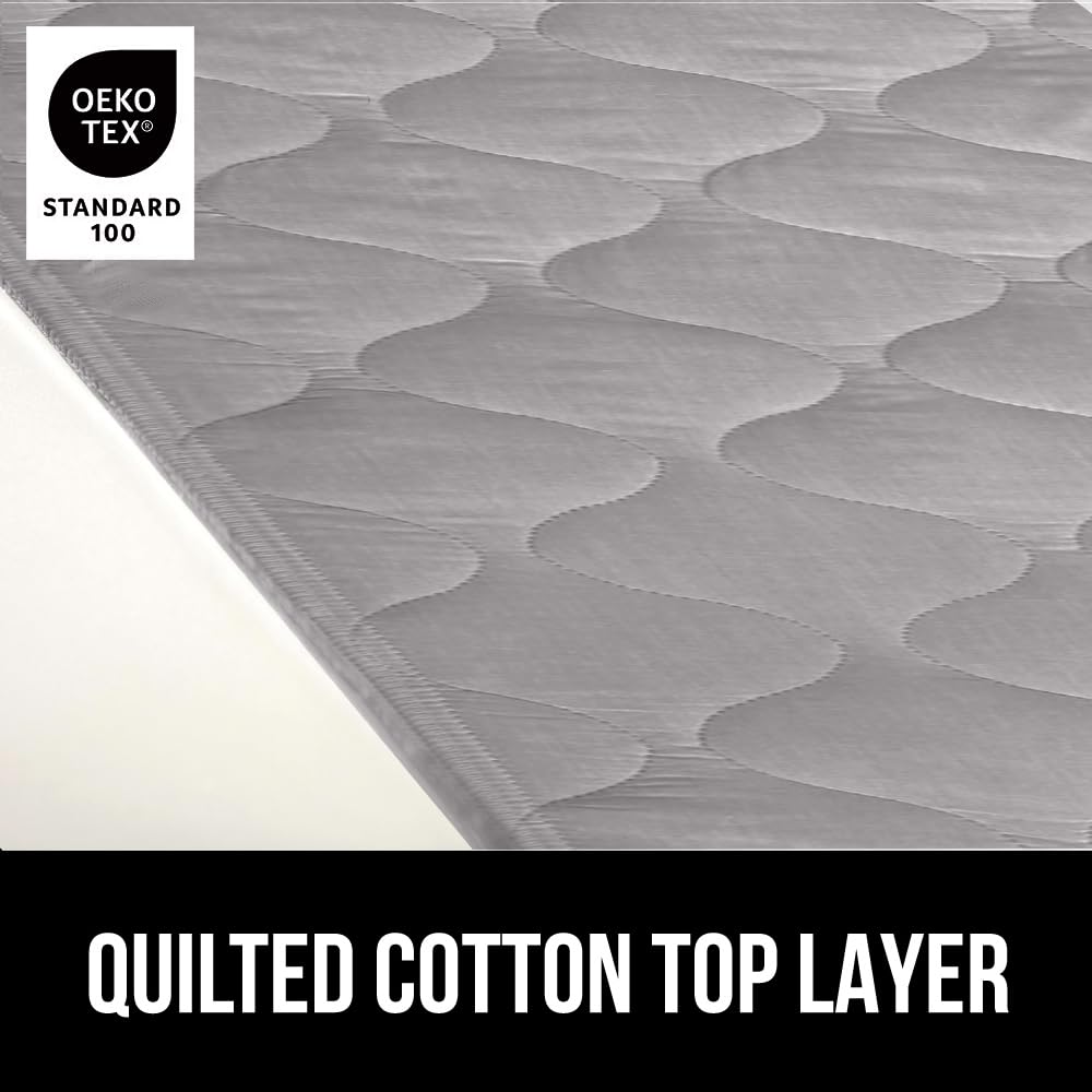 THICK QUILTED COTTON TOP LAYER: the unique 4 layer design is complete with a super soft quilted top that feels great; soft and comfortable; pad is not bulky or too thick, so it cannot be felt while sleeping