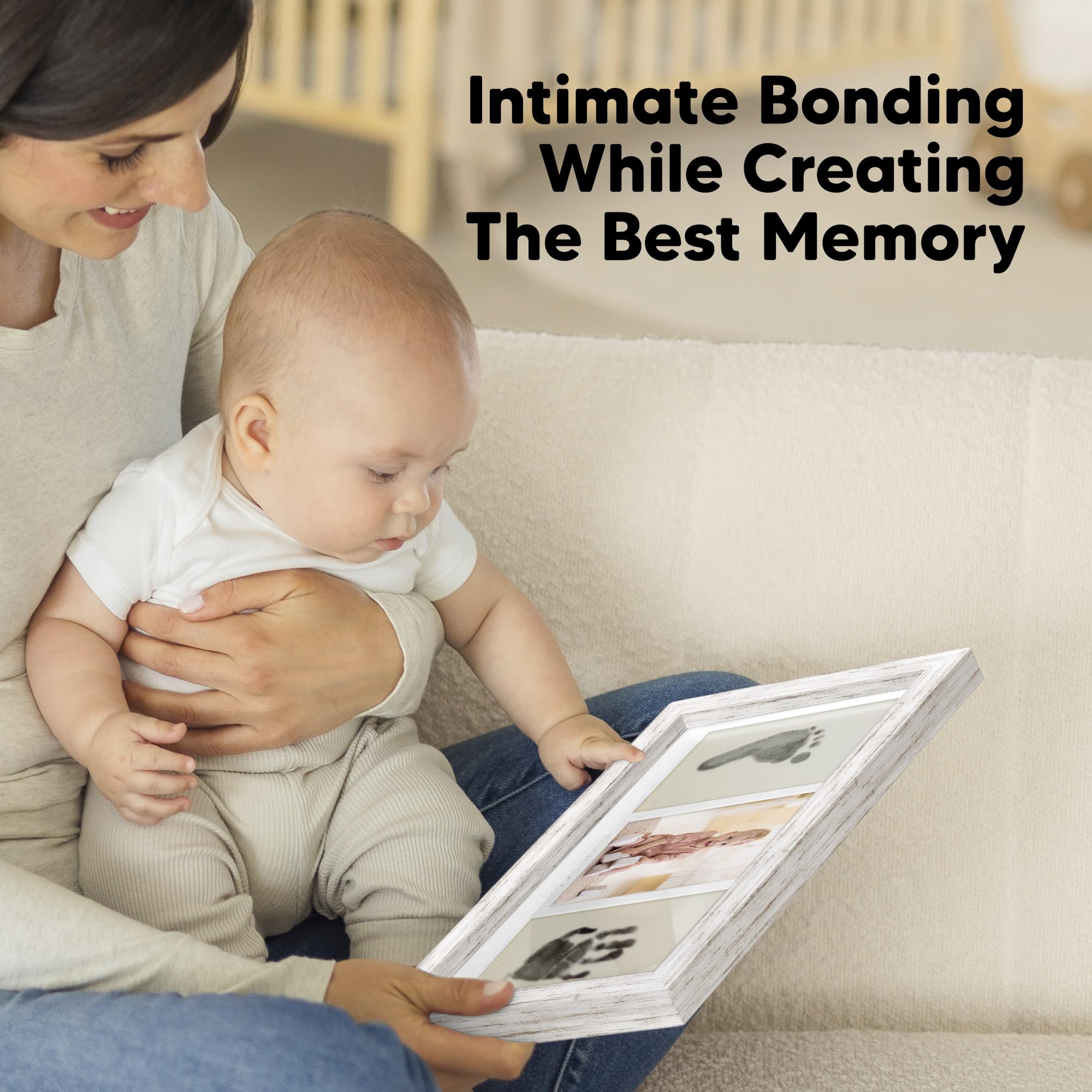 No Mess, No Residue - Designed to create your baby's hands and footprints without leaving ink residue on your baby. Our clean touch ink pads use a “zero ink contact” imprinting method to allow beautiful stamping on our baby keepsake frame.