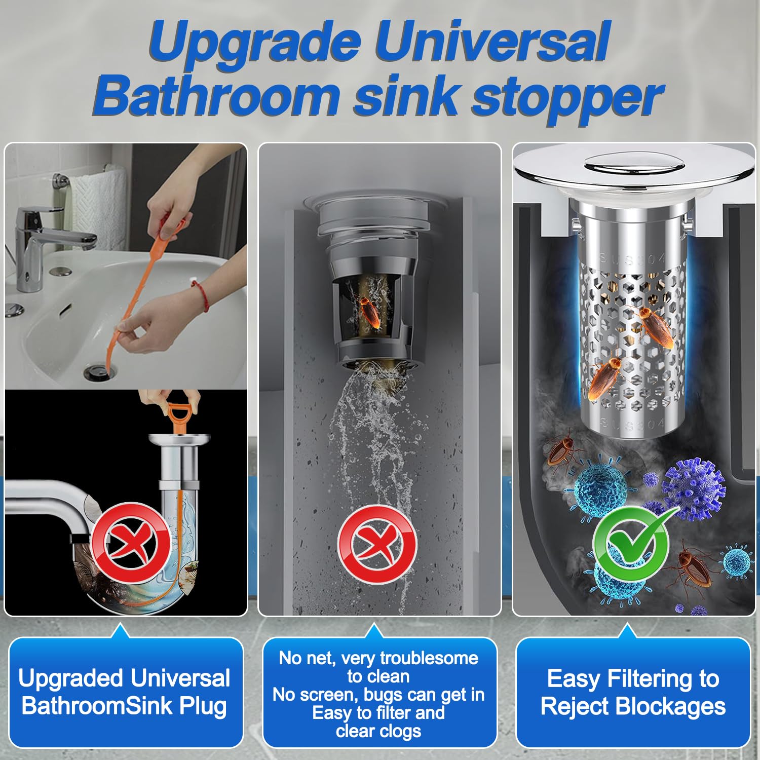 š„ćPop-up DesignćThis bathroom sink drain strainer is engineered to catch hair and prevent clogs in your bathroom sink. The sink stopper features an easy-to-use pop-up mechanism that makes it easy and convenient to open and close the drain. With a diameter range of 1.1-1.45 inches, it fits most American bathroom sink stopper and is an effective drain strainer. The brass core construction ensures durability and long-lasting performance, making it a great choice for all bathroom sinks.