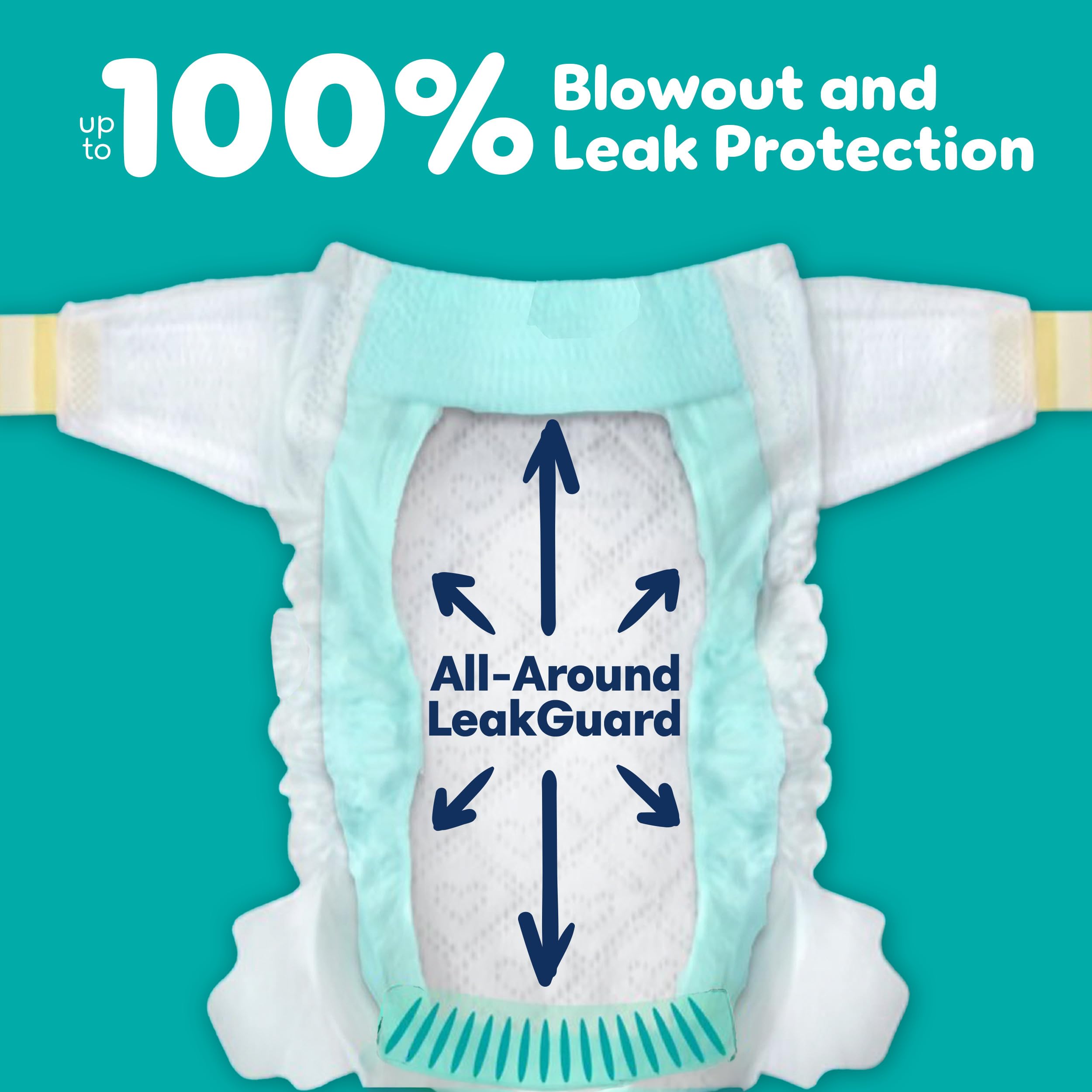 LEAK AND BLOWOUT PROTECTION: up to 100% leakproof protection with an All-Around LeakGuard, Blowout Barrier and absorbent core.