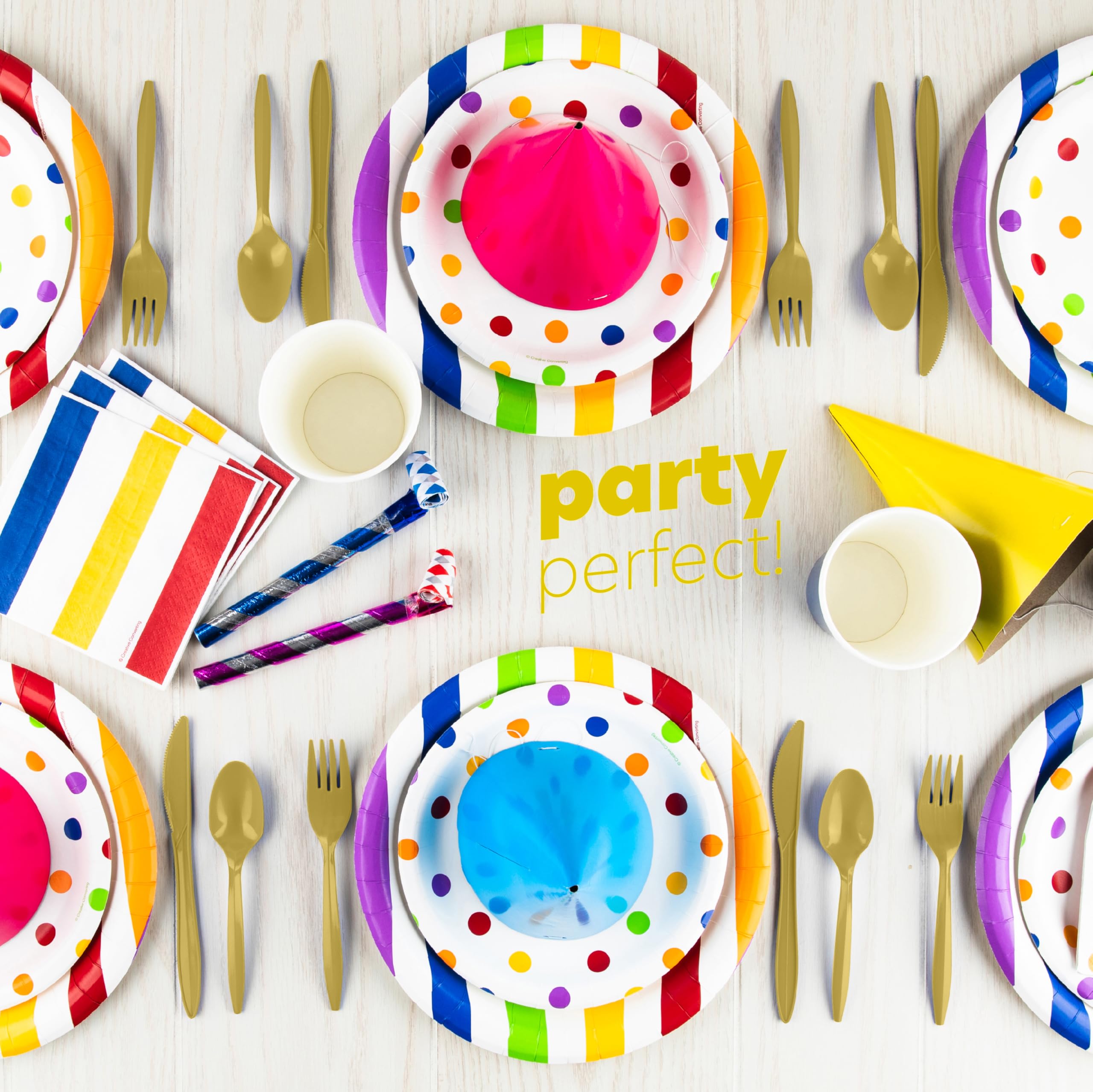 Colored cutlery set for parties and events. A variety of colors available to suit any taste or party theme. Perfect cutlery set for birthday parties, dinner, bbq, holiday dinners and more.