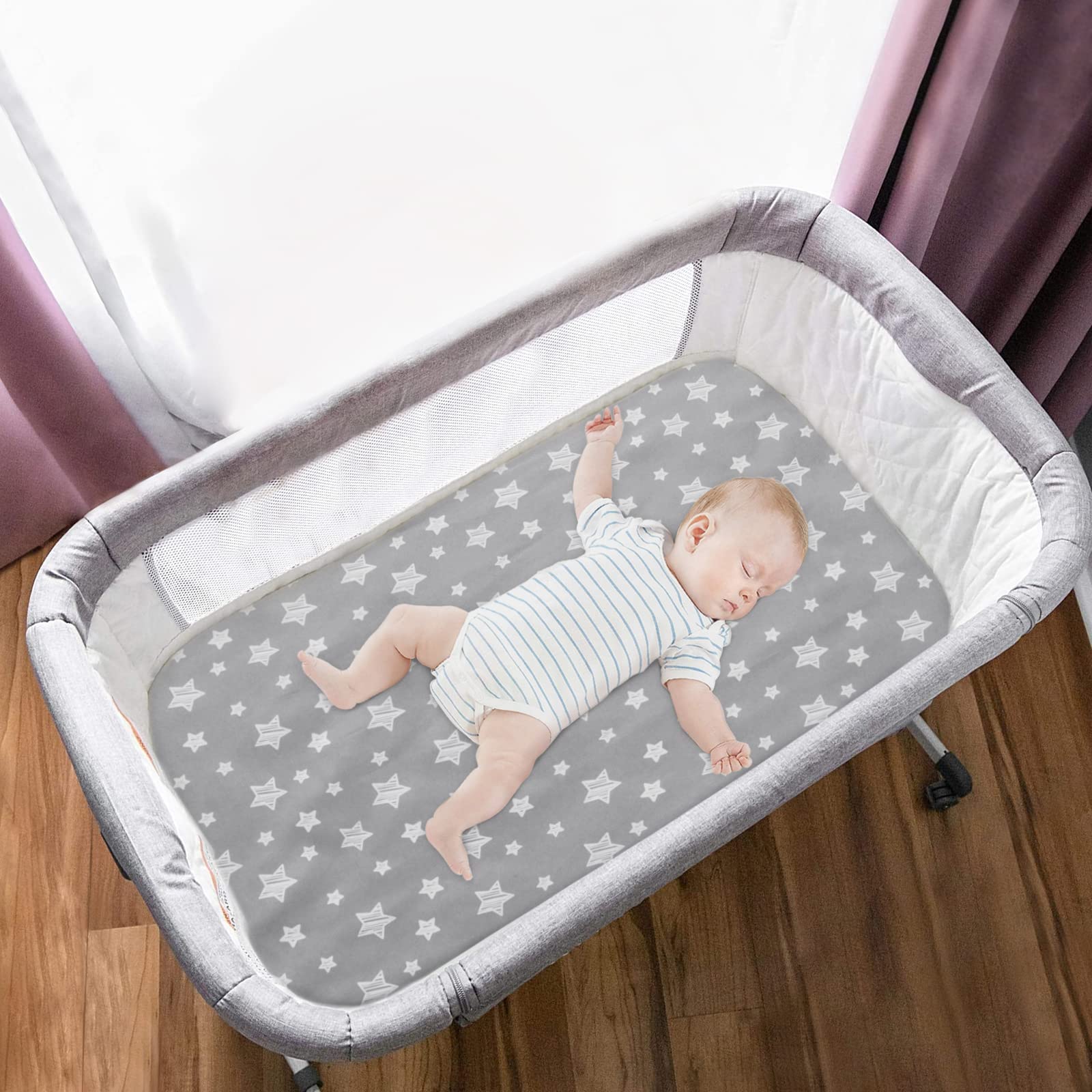 Waterproof and Noiseless: The backing layer of waterproof bassinet sheet protects mattress from any water spills or bed-wetting. And the bottom layer of this bassinet sheet is made of soft fabric, that won't make any crinkling sounds, which can provide your baby a quite and peaceful environmemt.