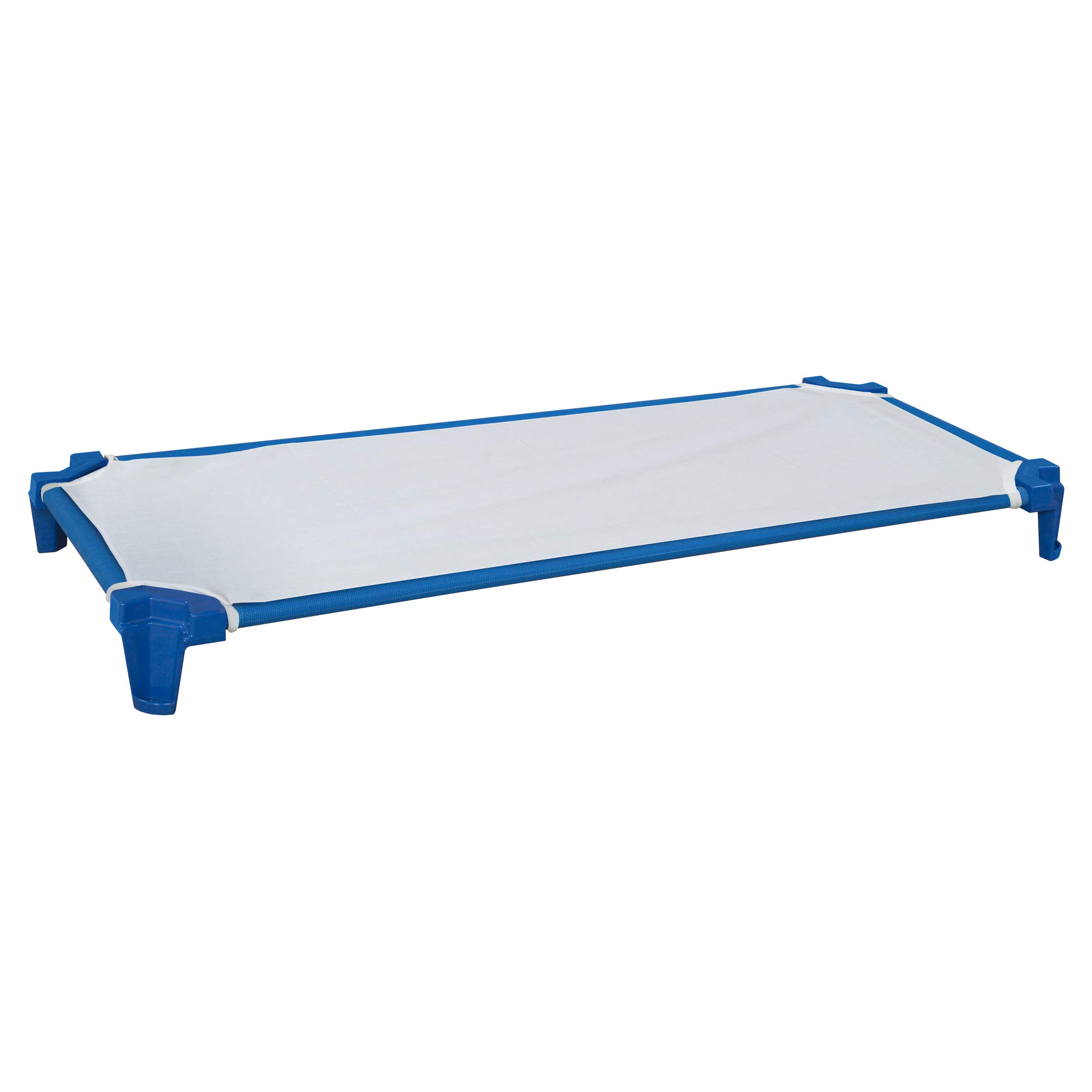 Preserve valuable classroom space with Wood Designs Incredible Cots with our white fitted sheets! Children will rest comfortably with our strong anti-sagging vinyl mesh fabric and featuring our patented extra strong and durable ABS plastic corners. Let your pre-schoolers rest in comfort with our 100% cotton white fitted sheets. When nap time is over, you can easily stack up to 10 of our cots together saving precious space for your home, school or day-care. We recommend this size for all pre-schoolers (3-6 years old). Our cots are constructed with a heavy duty powdered blue 16 gauge steel bars that provides incredible durability in combination with our heat sealed and sewn seams vinyl mesh cover. The vinyl mesh cover has a hook and loop closure at the ends of the cover to ensure a taut sleeping surface. The vinyl mesh fabric and sheets are removable and machine washable making cleaning up a snap. The Wood Designs Incredible Cots exceeds CFT-115/116 Flammability standards and is GREENGUARD Gold Certified for non-toxic emissions for improved indoor air quality. - The overall dimensions for this product are 4.75”H x 52”W x 22.25”D. - This product comes with six flat packed cots and a carton of six fitted sheets. - Comes with a 10 Year Warranty - Ready to Assemble