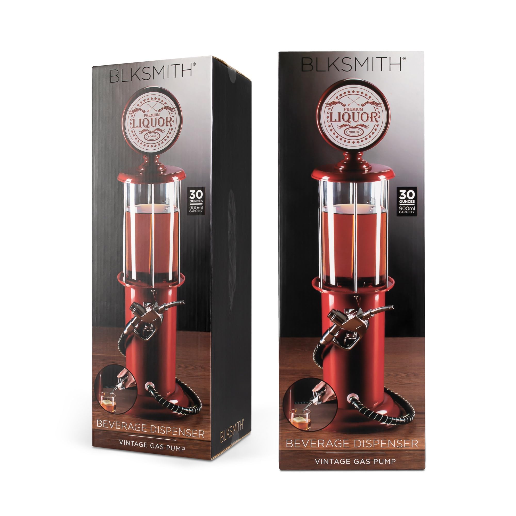 STYLISH BAR DECOR: Upgrade the design of your home bar with this automatic drink dispenser that is one of the few bar accessories that delivers on design and practicality. The plastic drink dispenser is vintage 50s red design with a push down pump dispenser that delivers your drink smoothly and is one of the great man cave accessories
