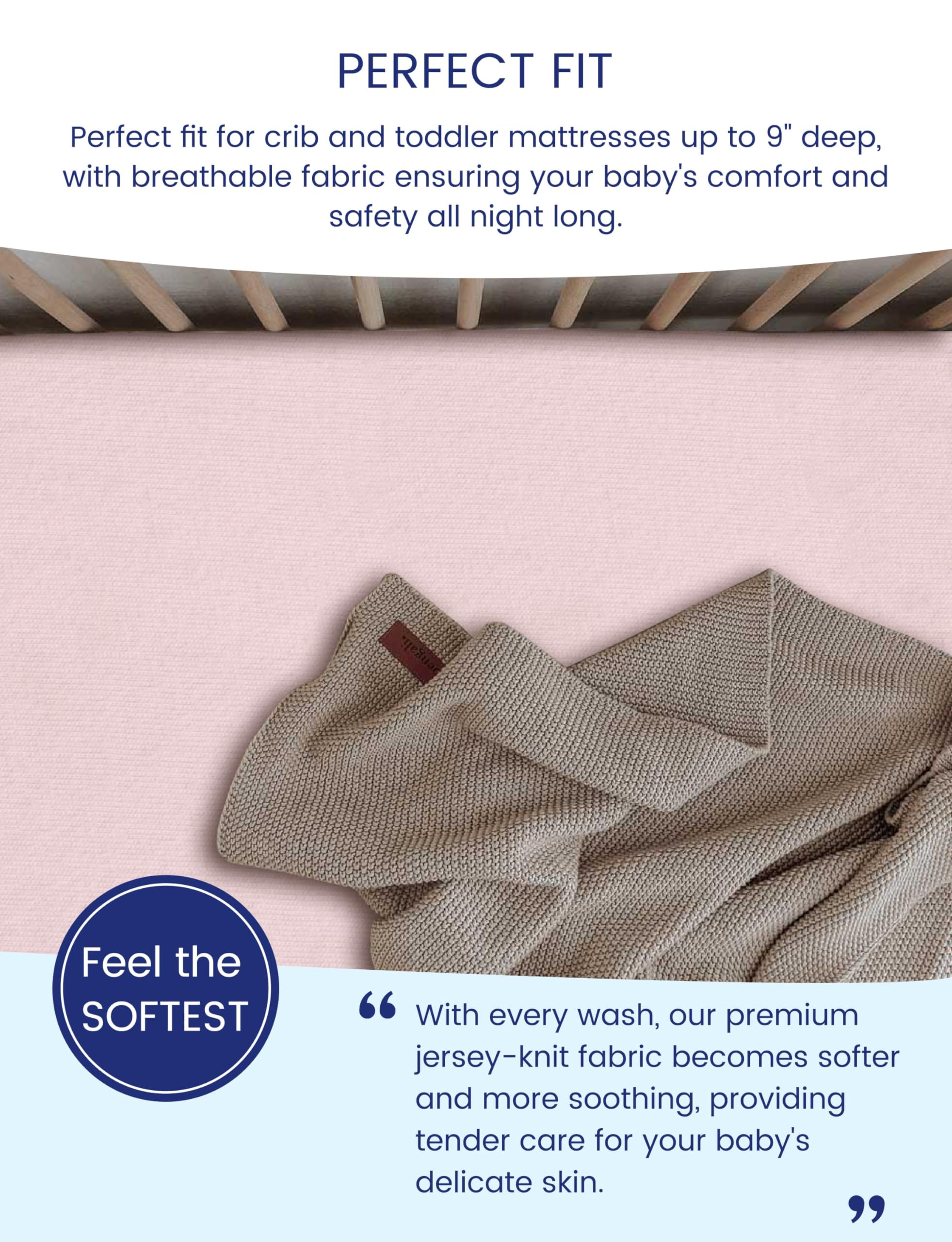 SOFTER FOR LONGER: With every wash, our patent TotCare Fabric becomes softer and more malleable, molding softly to your baby's crib mattress and around your loved little one's skin. No more one-time use. Use it. Wash it. And love it. 100,000+ wash greater; No deformation, no damage, no fading.