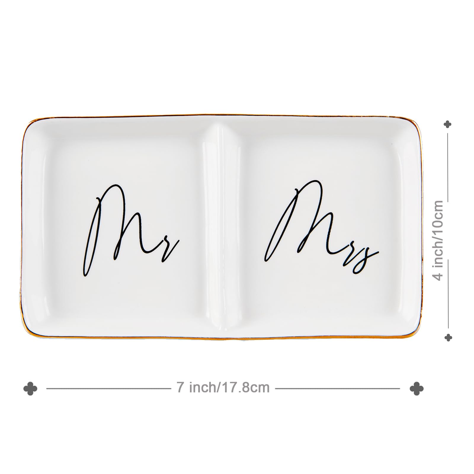 【Size&Material】Measures in inches: 7"Length x 4" Wide x 0.6" High. This Mr and Mrs Ring Dish Engagement is made of the high-quality white ceramic. Perfect engagement gifts for her, engagement gifts for couples, bride gifts, bridal shower gift ideas, wedding gifts for women.