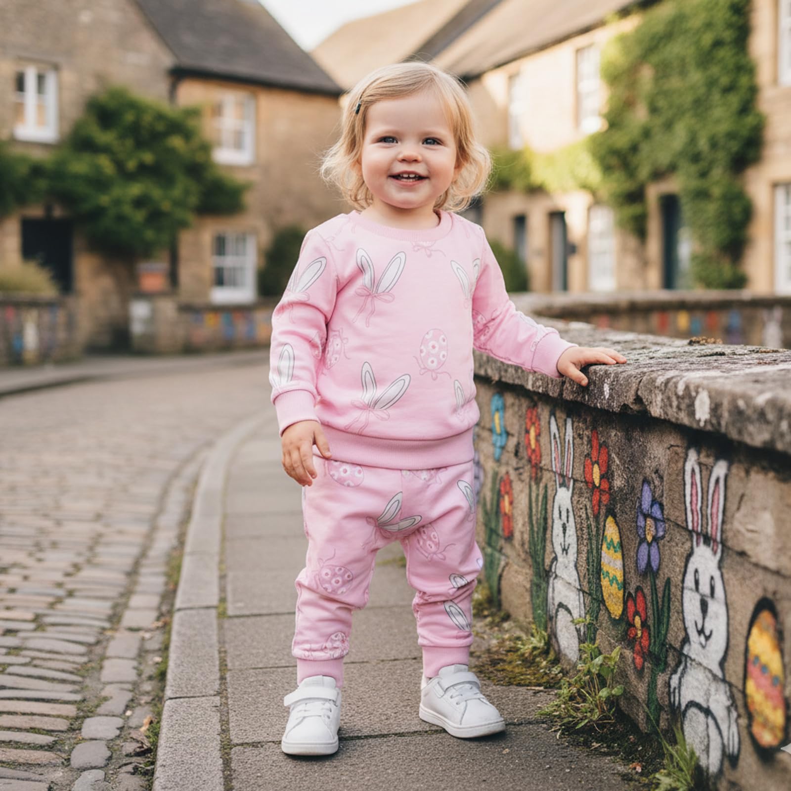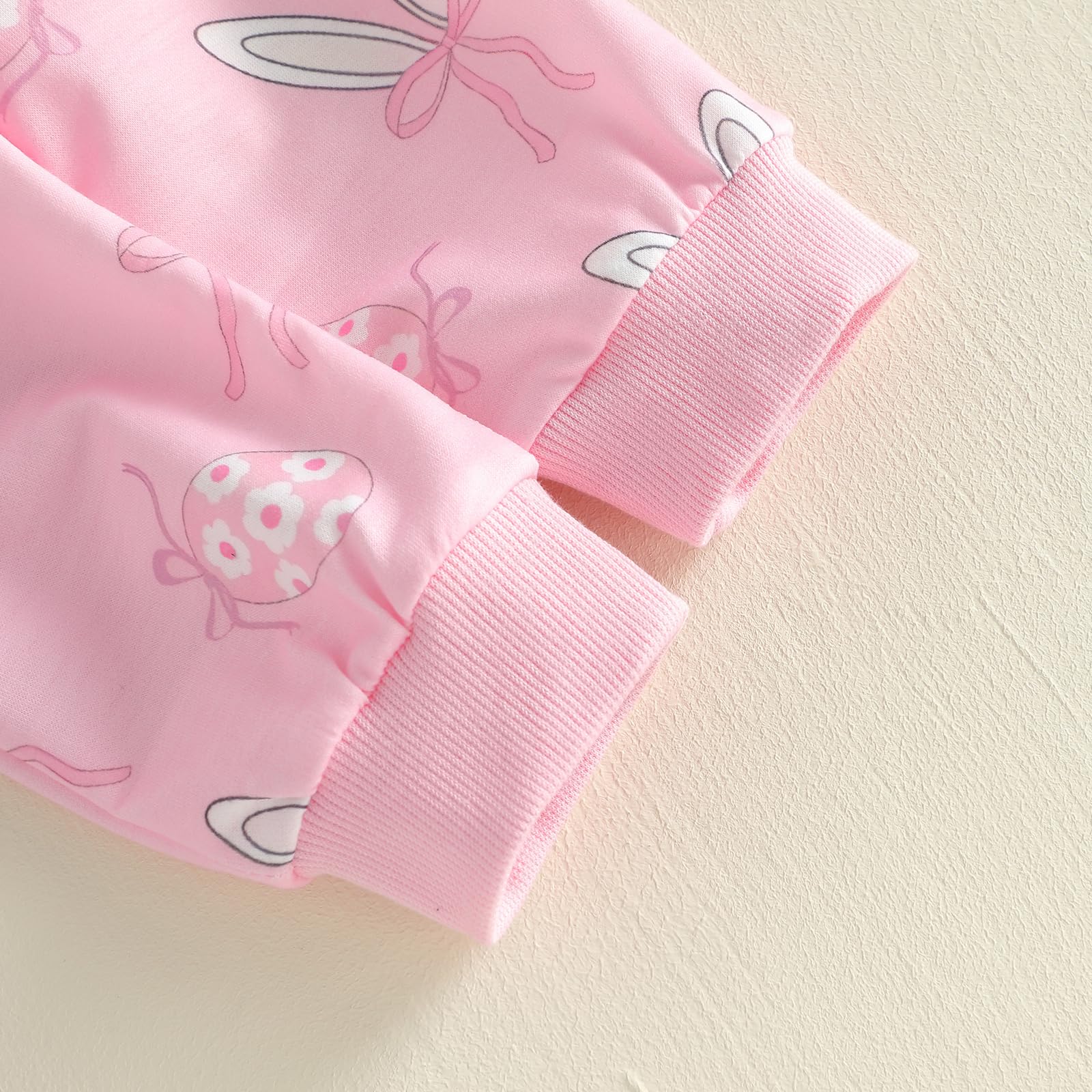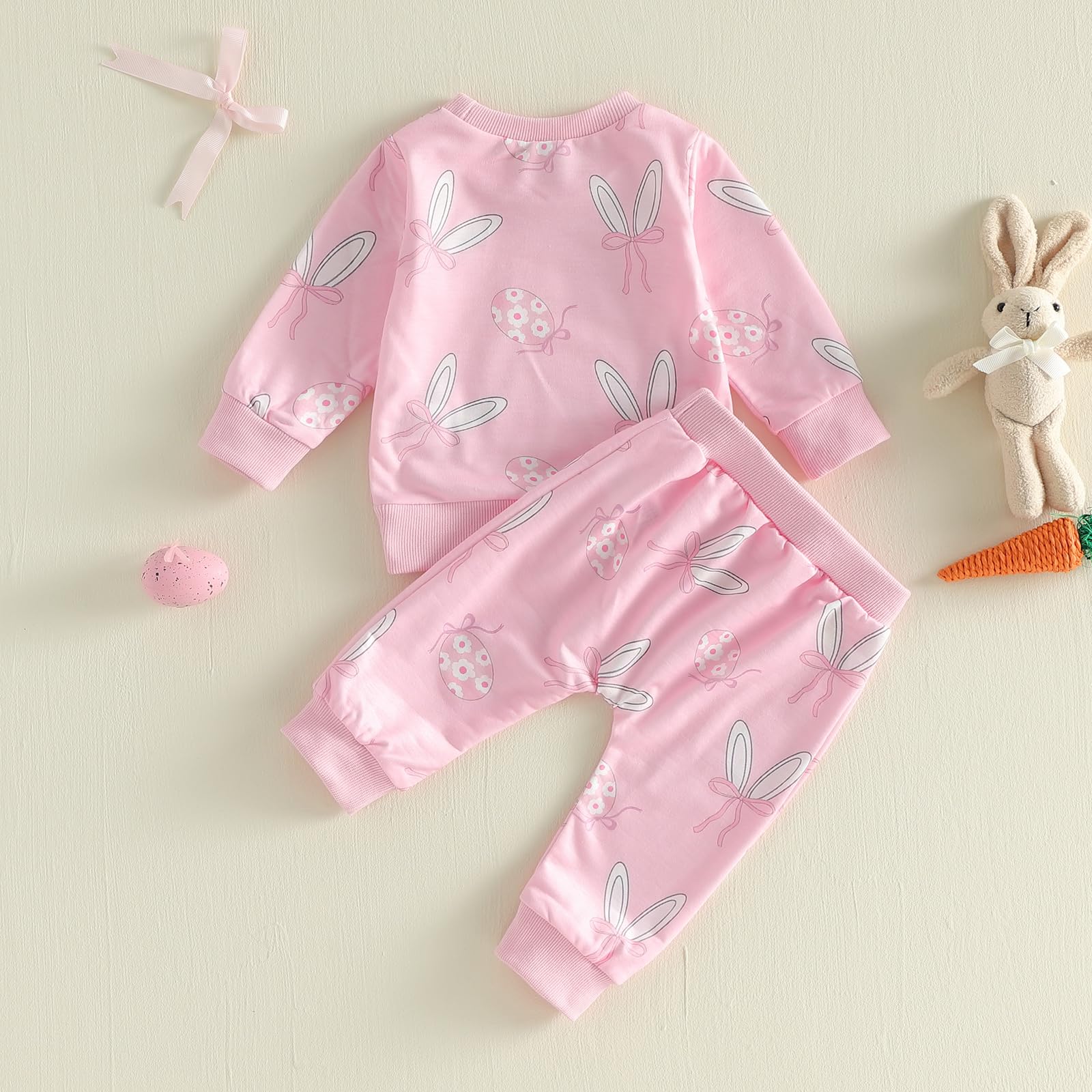 Feature: Baby girl easter clothes: Floral egg bunny ear bow print, ribbed cuffs, loose fit. Baby Sweatshirt: Long sleeve, crew neck. Baby girl pants: Elastic waist, full-length. Easy to put on and take off. Toddler sets for girls, sweet and chic style