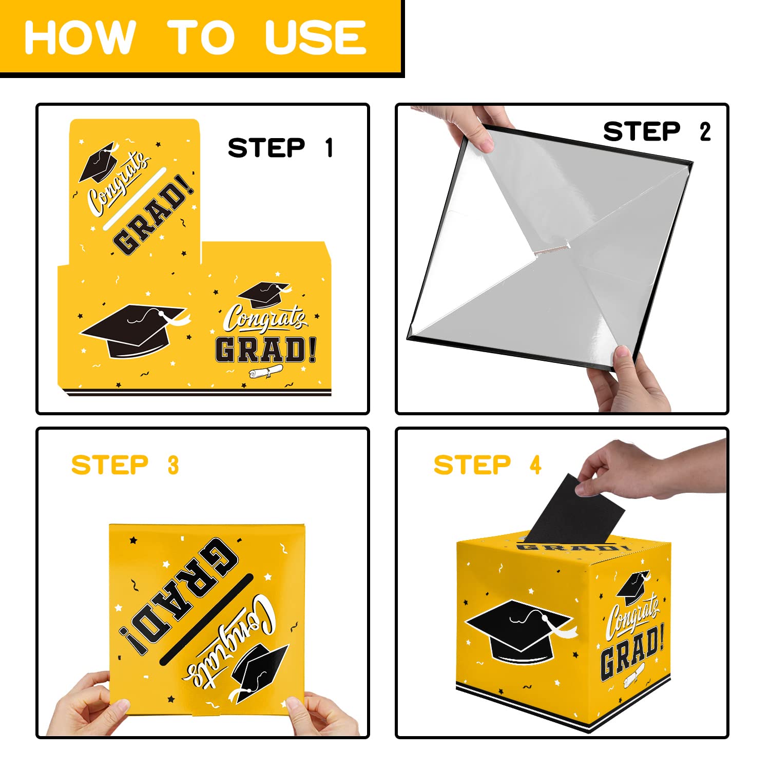GRADUATION BOX DECORATIONS: decorate your party more unique and beautiful by using the box. It’s easily to fold and prepare for the best party by our party supplies. A little simple decoration can make your party to attract the attention of all guests.
