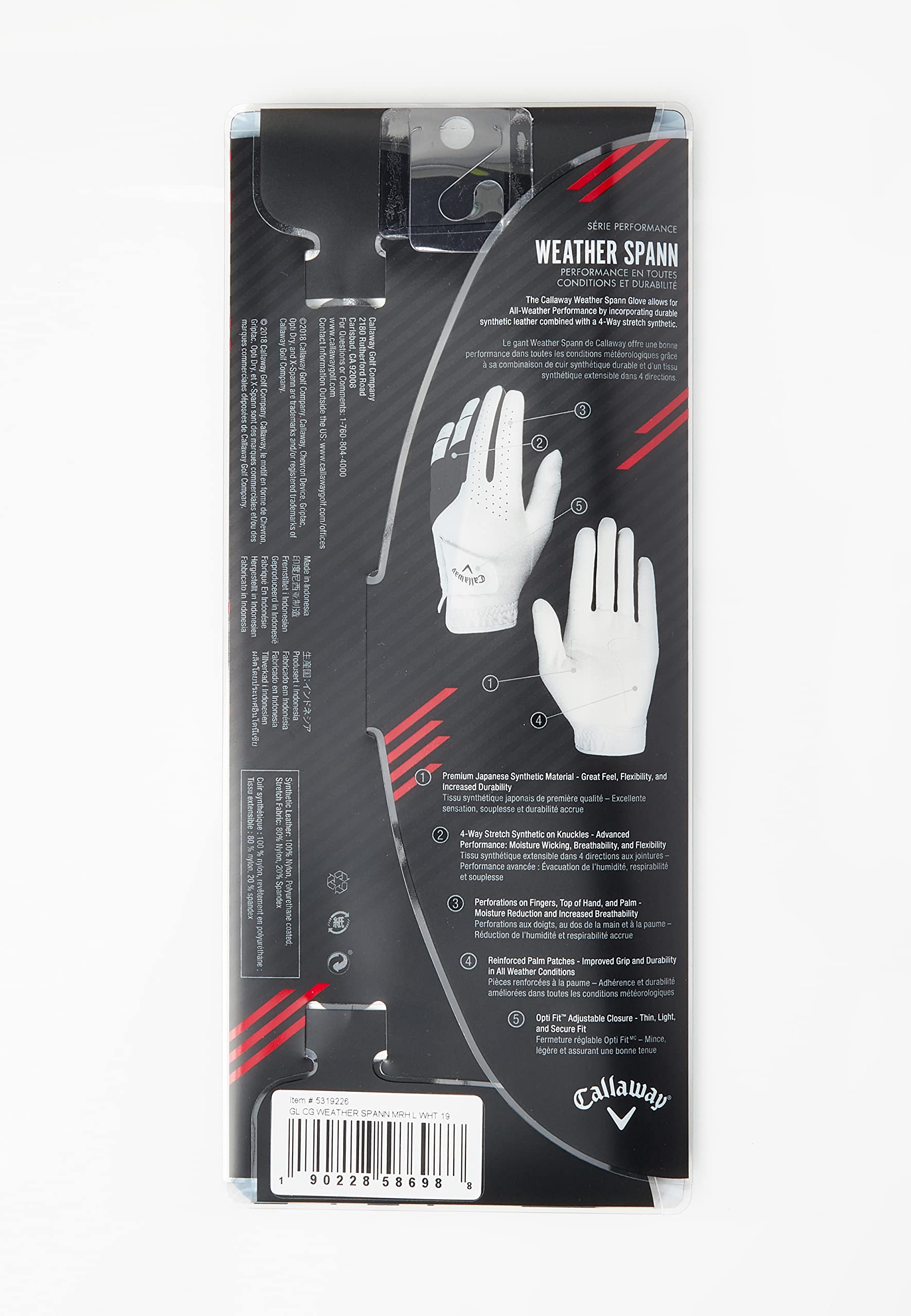 The Callaway Xtreme 365 Glove allows for All-Weather Performance by incorporating durable synthetic leather combined with a 4-Way stretch synthetic.