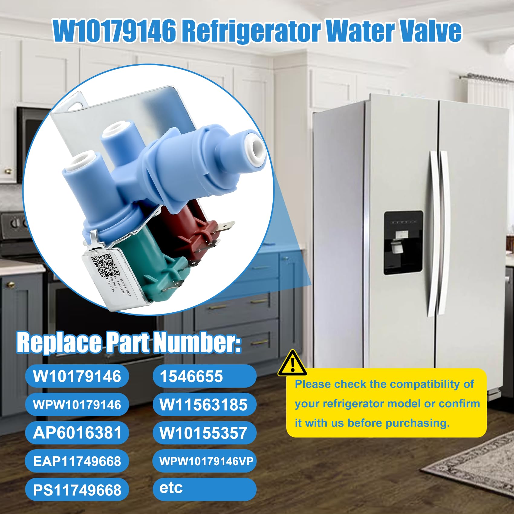 【Part Number】 WPW10179146 water inlet valve replacement parts: W10179146, AP6016381, EAP11749668, PS11749668, 1546655, W11563185, W10155357, WPW10179146VP etc. Please check the compatibility of your part number carefully before ordering.