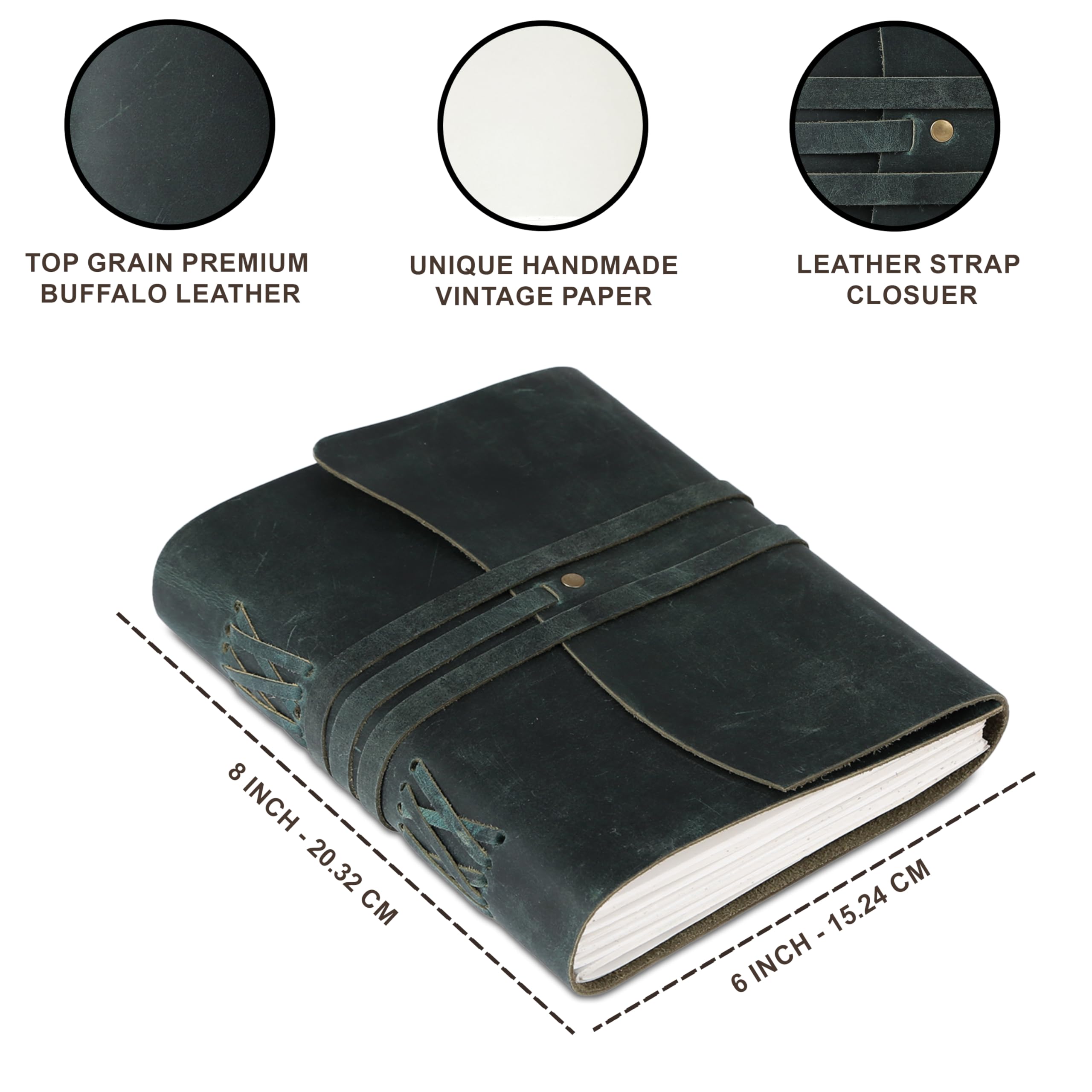 Non-Refillable & Secure Binding – Bound to preserve your thoughts forever, the journal features hand-stitched binding and a rustic leather strap closure to protect your memories and ideas on every adventure.