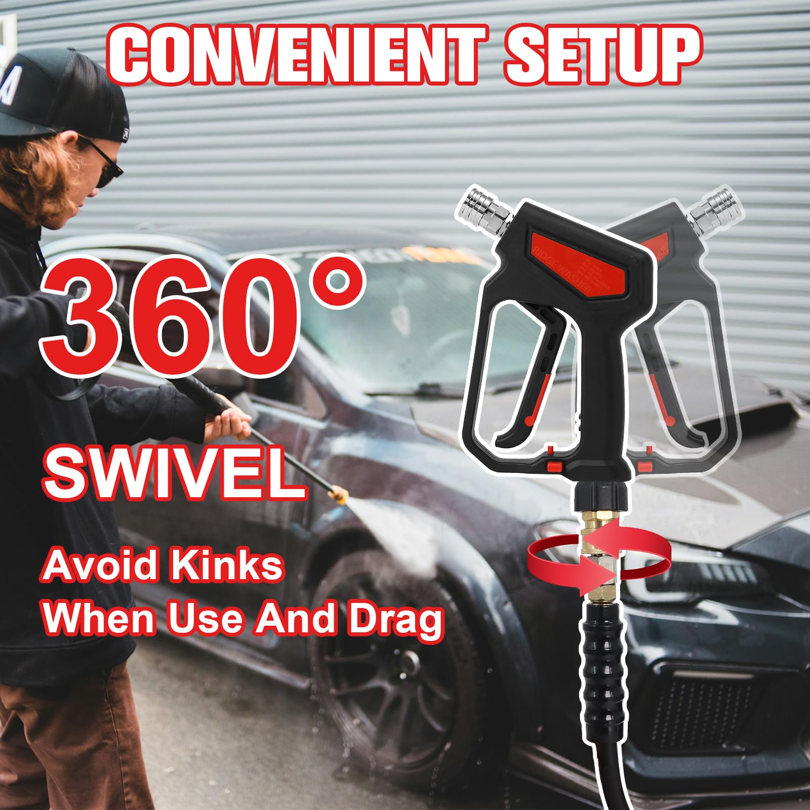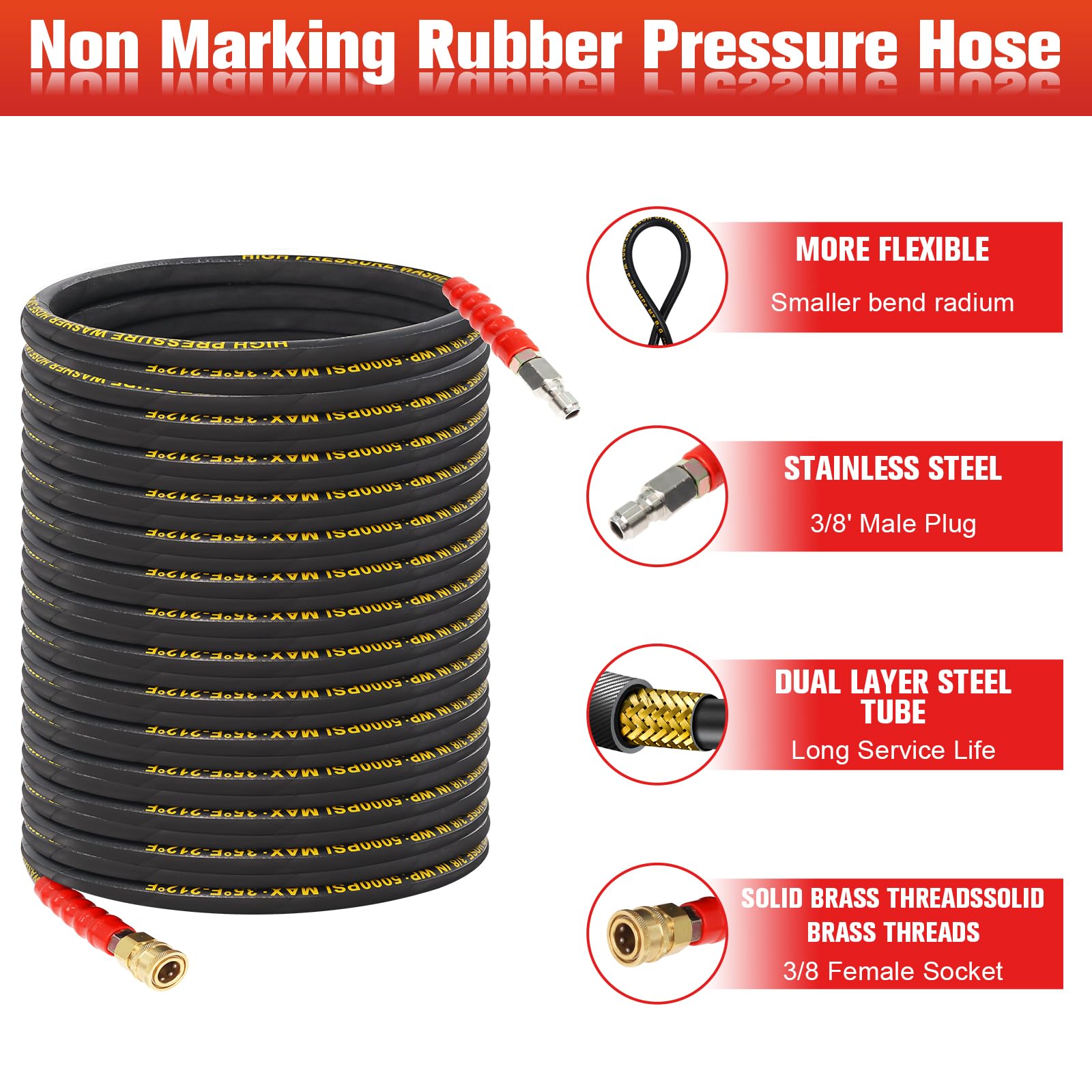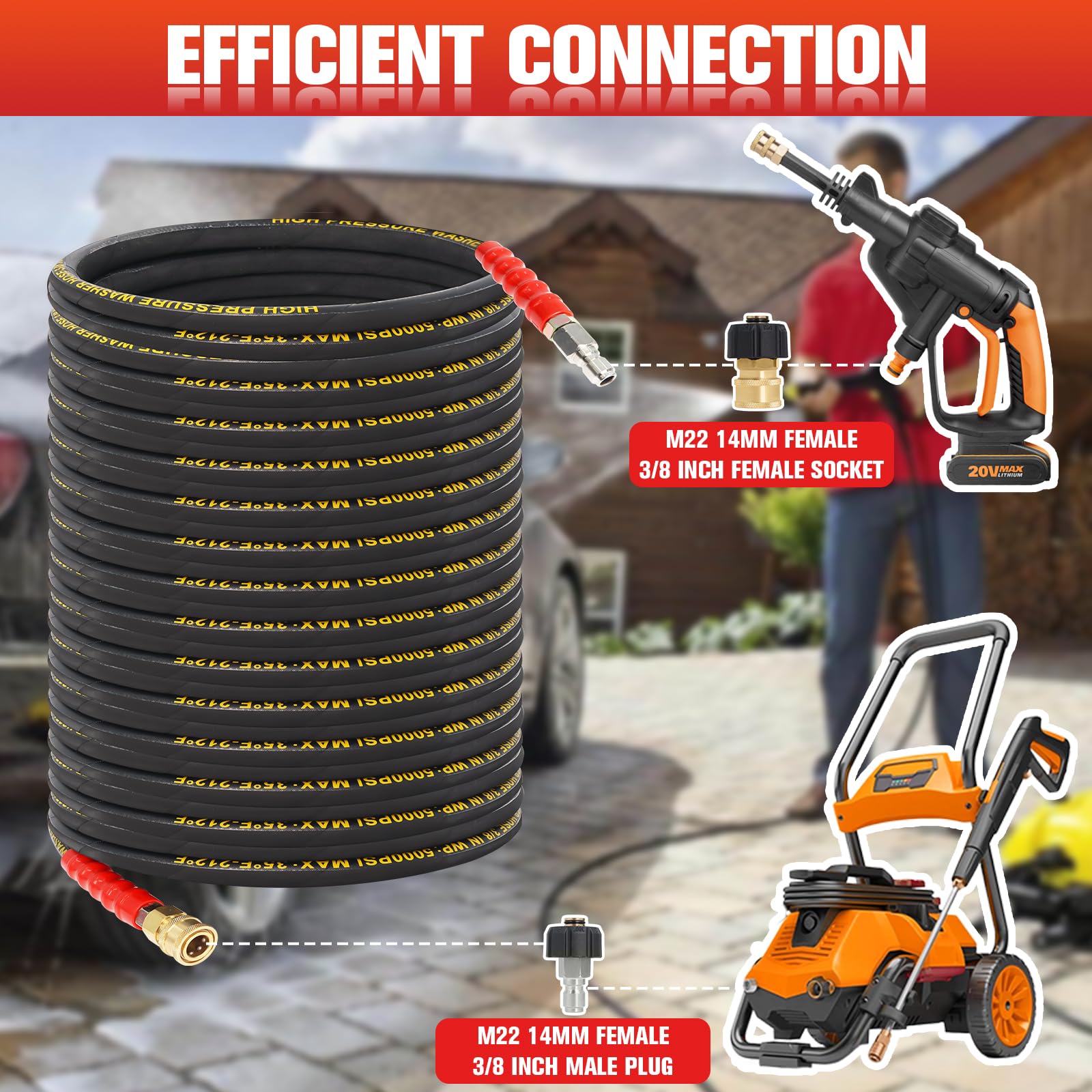 【5000PSI High Pressure Washer Hose 】:This high pressure cleaning hose has a maximum working pressure of up to 5000 PSI, burst pressure of up to 16,000 PSI, and flow rate of 2.5 GPM to 5 GPM, this hose is ideal for power washing in a variety of industrial, commercial, and most household workplaces. Great replacement for Simpson, Karcher, Craftsman, Generac, Honda, Ryobi, Troy Bilt, Champion, Excell, Dewalt, Rigid, etc.