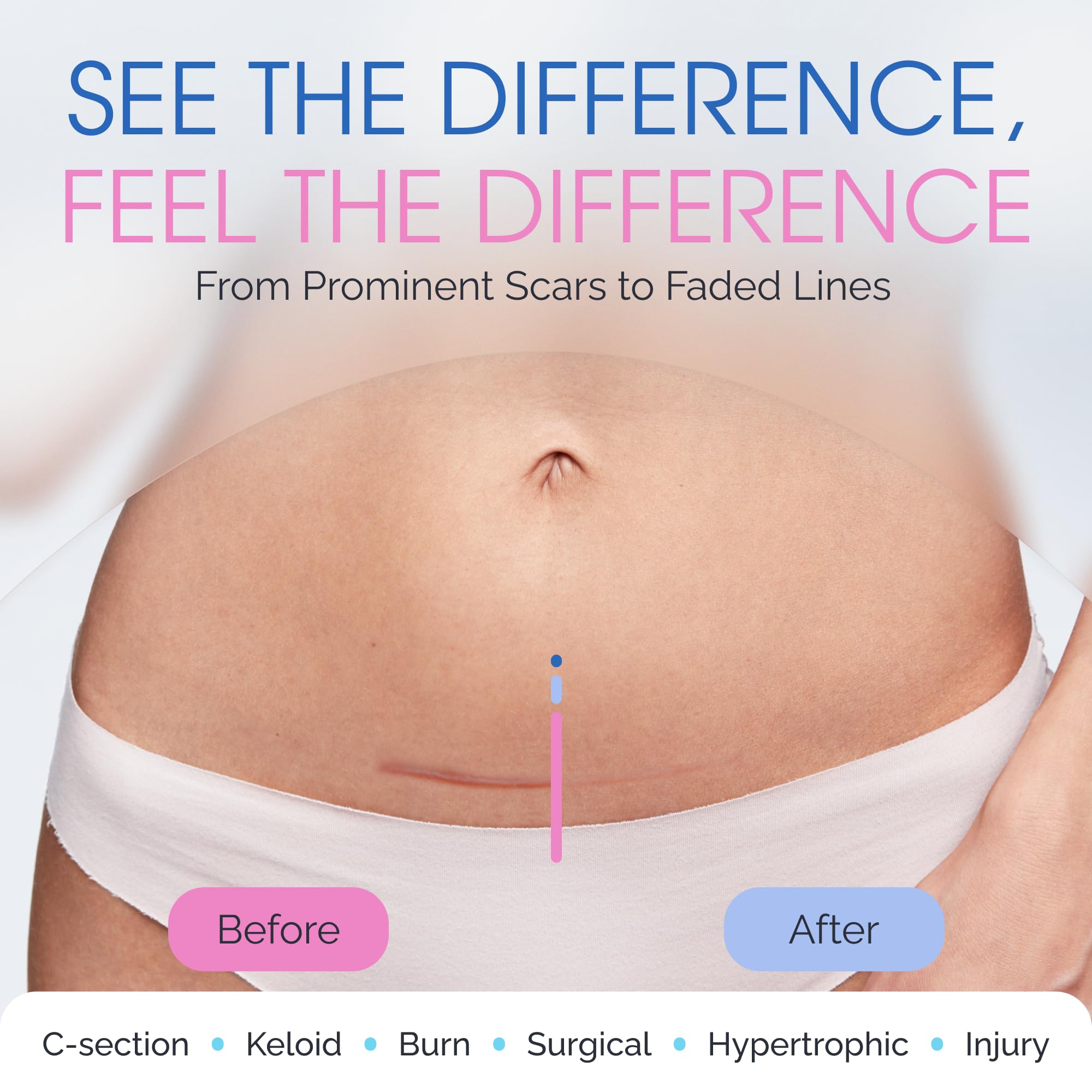 Alleviate C-Section Scar Discomfort: Experience relief from the itchiness, pain, and discomfort associated with C-Section scars. Protects delicate scar area. See improvements in scar appearance in as little as 3-4 weeks* with further improvement in appearance continuing over the duration. *Individual results may vary.