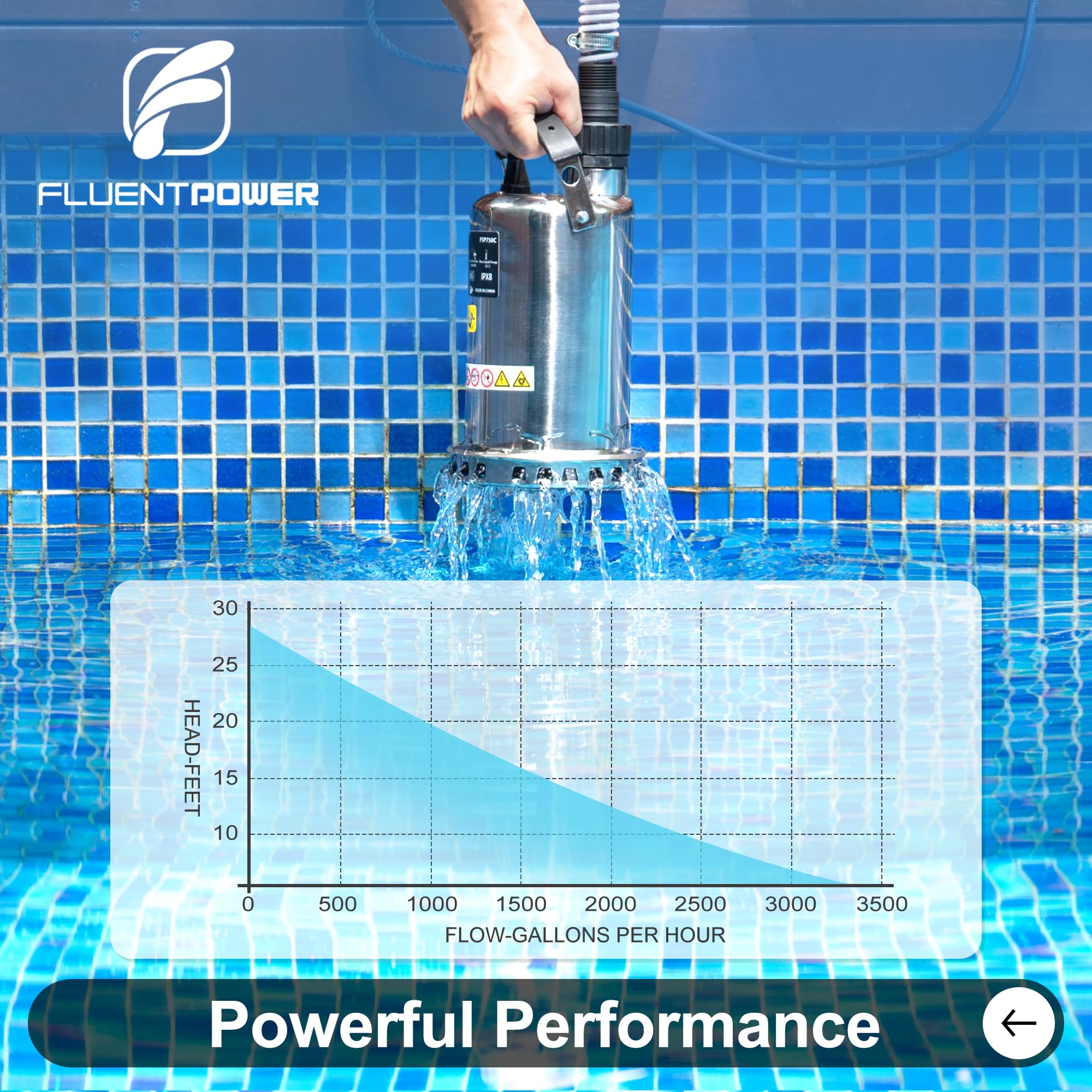 SIMPLE PLUG-IN CONTROL: The pump ON/OFF is controlled by cable plug. It can start pumping water from 2" down to 0.4". Designed for quickly draining water in hot tubs, water tanks, rain barrels, swimming pools, garden ponds, wells and so on