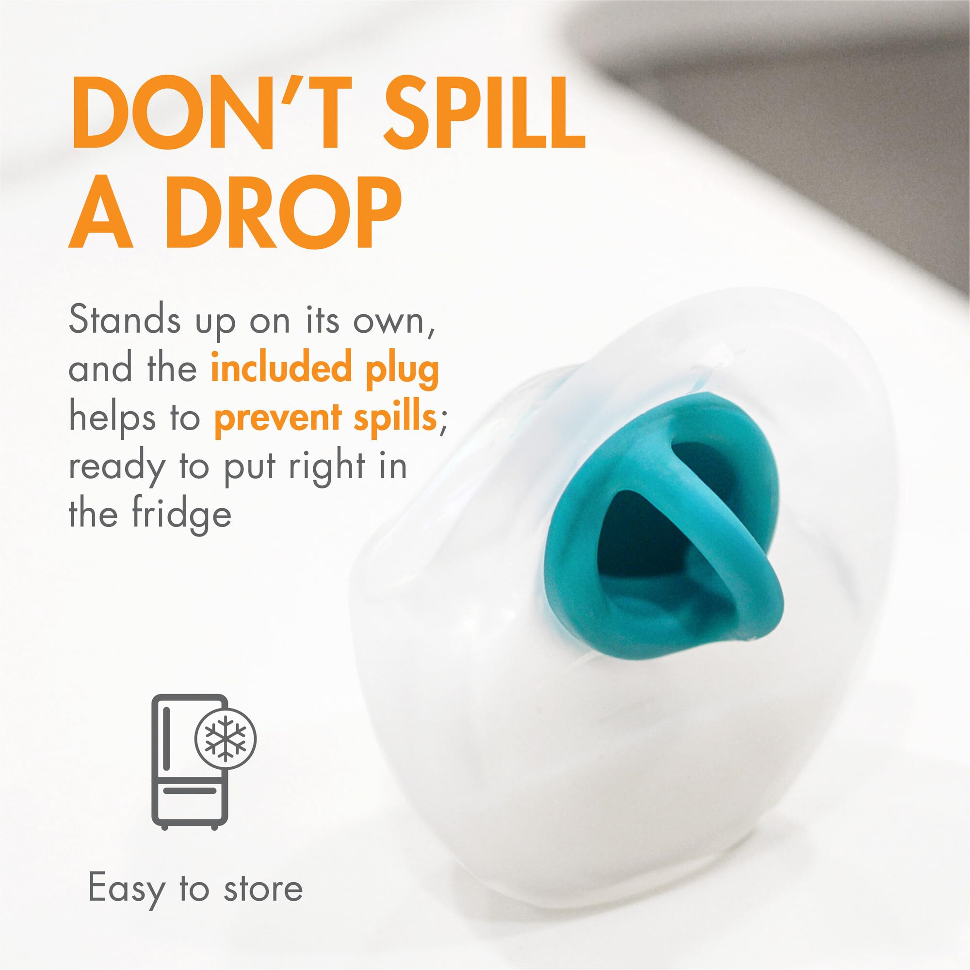 Easy Pour: Trove's intelligent design allows it to stand on its own for easy transfer into a breast milk storage bag or baby bottle