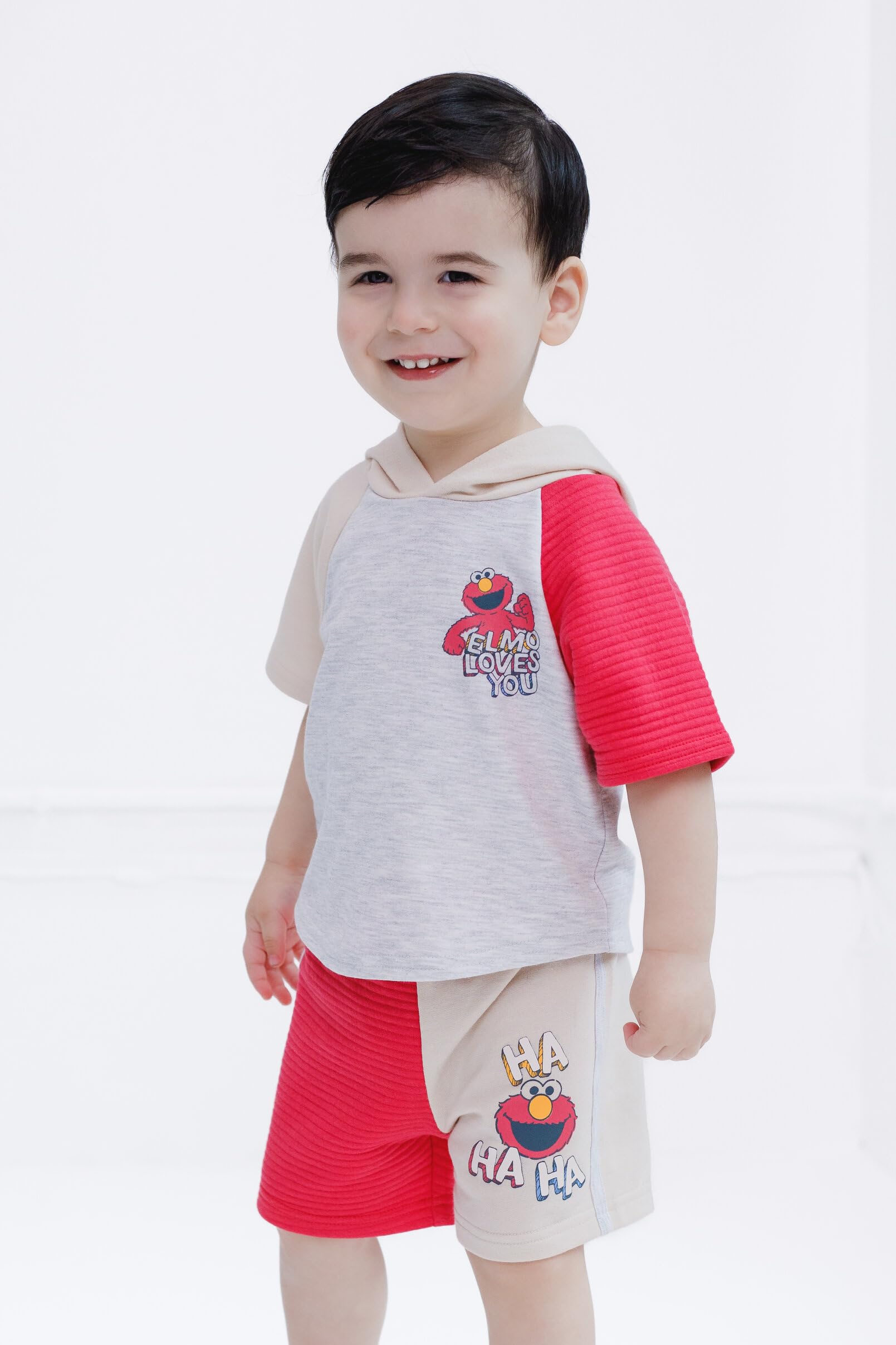 Description Prepare for fun-filled days in this charming Sesame Street outfit! This stylish short sleeve hooded shirt and shorts set features a playful color block design and adorable artwork of favorite characters like Elmo and Cookie Monster that your little Sesame Street fan will love to wear. Crafted from soft baby French terry material and textured ribbed Ottoman knit, this fashionable ensemble ensures day-long comfort for your child during play and adventures!