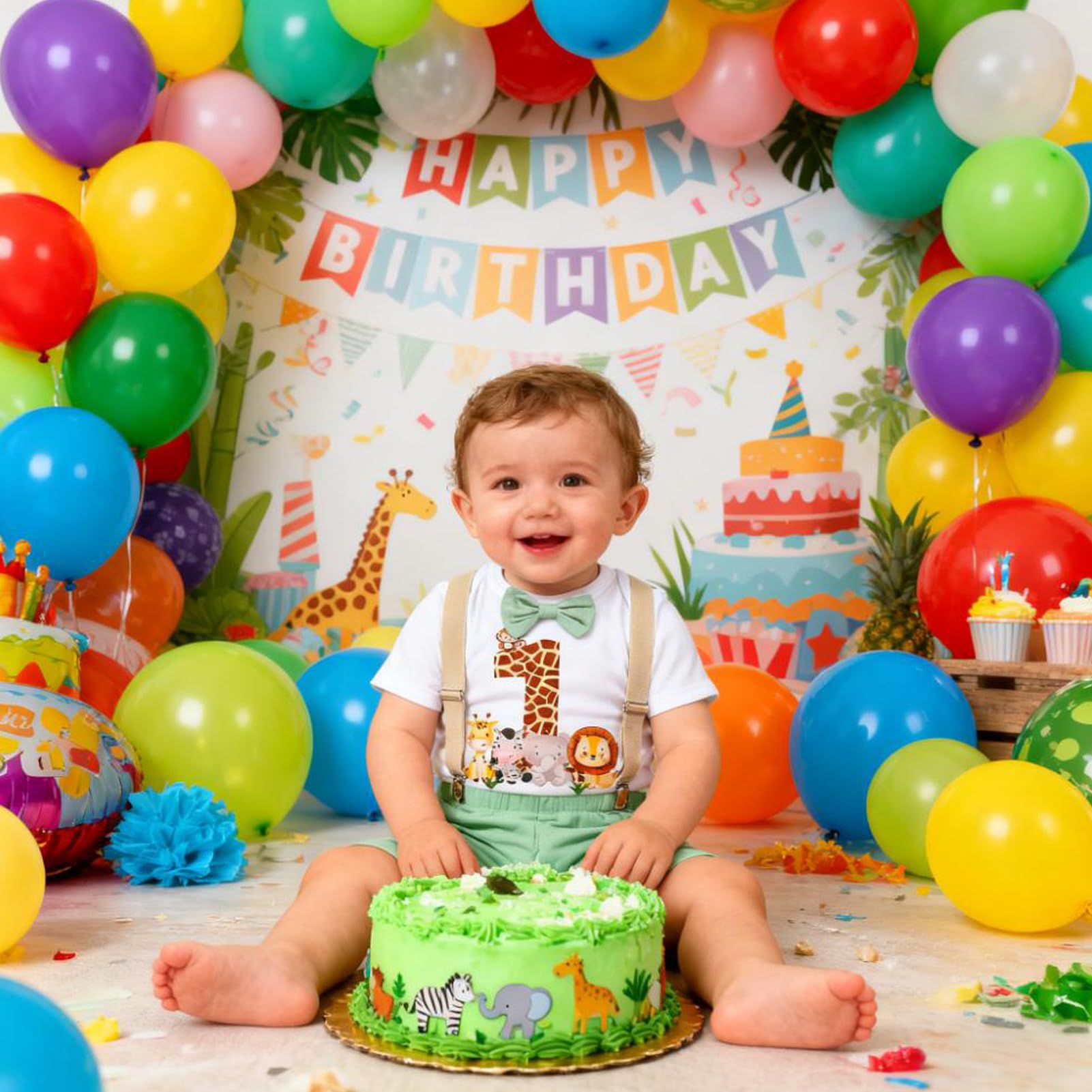 【Wild One Birthday Outfit for Boy Baby】Baby boys wild one 1st birthday outfits lion jungle safari animals cake smash outfit for jungle woodland animals first birthday party smash cake pictures. Jungle safari theme party decorations forest animal theme / wild one theme birthday party supplies includes Romper+Suspenders+Diaper Cover Shorts. First birthday photos outfit can as birthday decorations, woodland creature 1st birthday outfit for 1 year old baby boy first birthday;