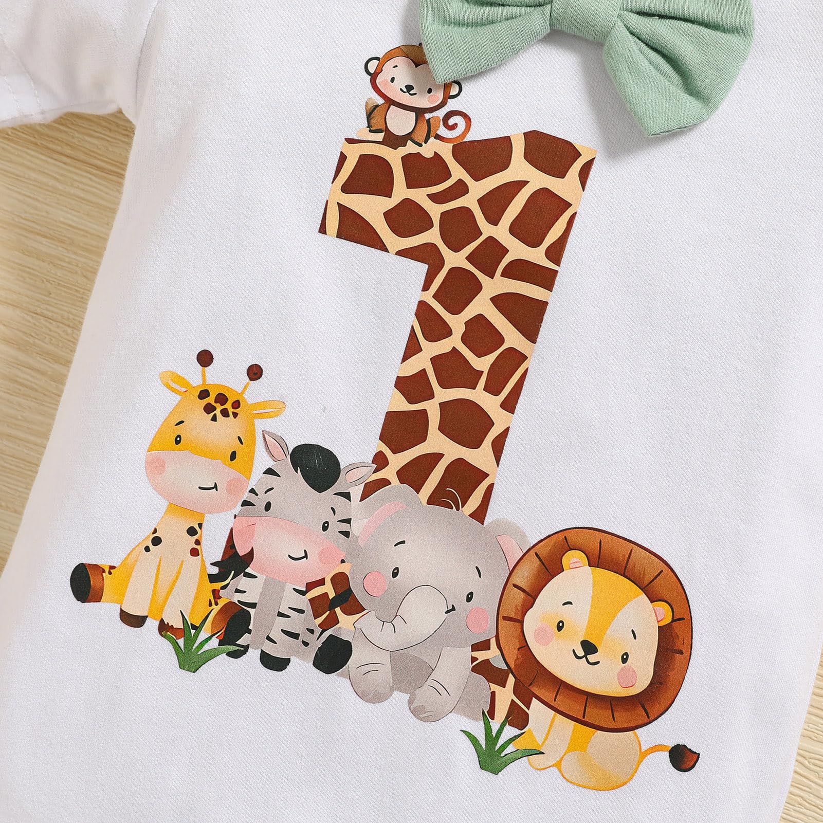 【Wild One 1st Birthday Romper Headband】Animal outfit baby boy, white short sleeve bodysuit with bowtie. 1st Birthday, Lion Tail, Giraffe, Tiger to convey to meaning of forest animal theme one year old pictures. letter “Wild One” . First birthday photos with the wild one outfit for first birthday party supplies, wild one birthday decorations;