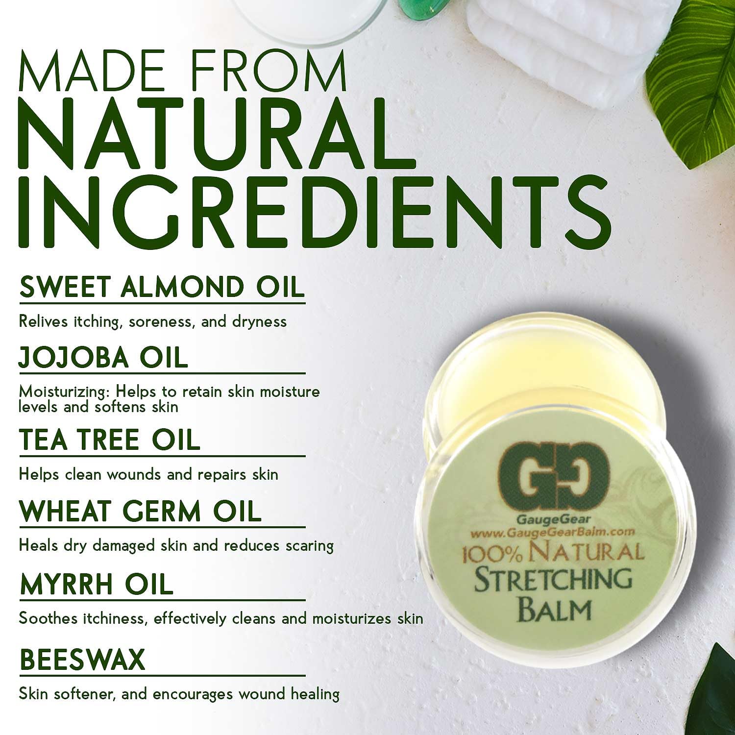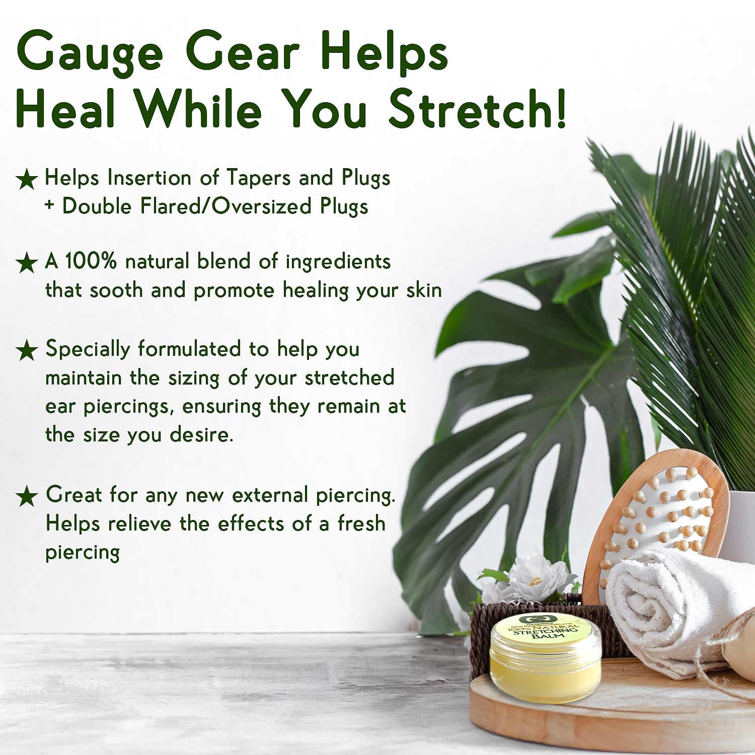 Never stretch your ears without Gauge Gear! Read ingredient list below to see their effects