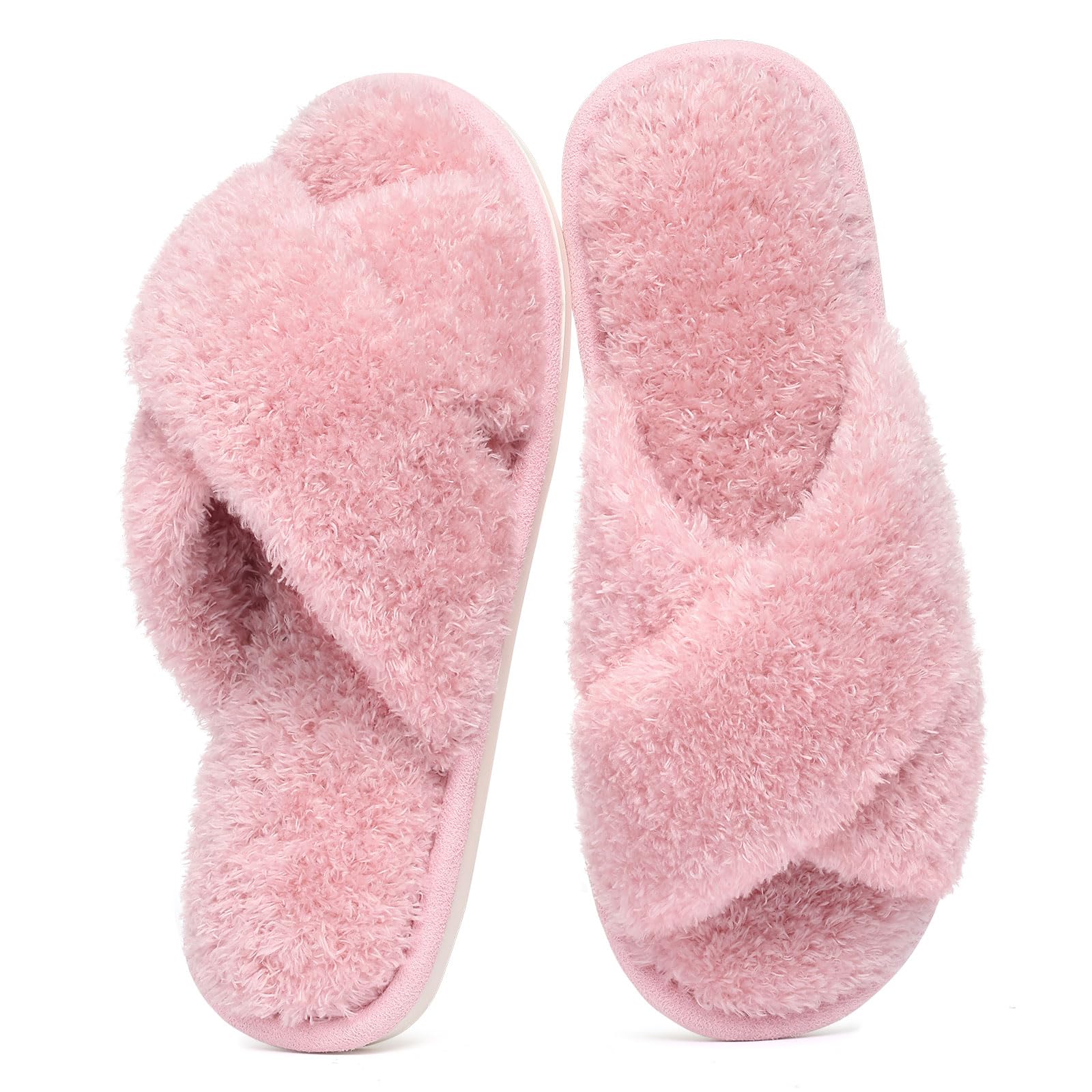 FUZZY HOUSE SLIPPERS: Fuzzy faux fur upper and footbed surround your foot in cloud comfort, making your feet cozy. A good choice for reducing muscle fatigue after a long day of work.