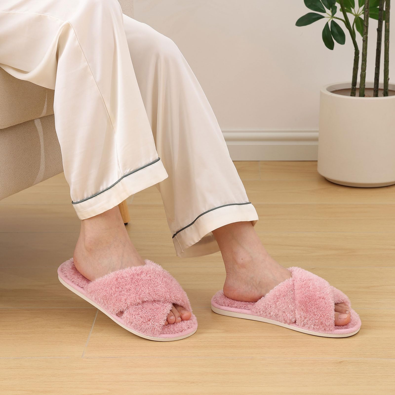 FASHION & ELEGANT: Breathable open-toe along with trendy faux fur design makes these womens slippers stylish and practical. Easily slides in whenever you want your feet relaxed.