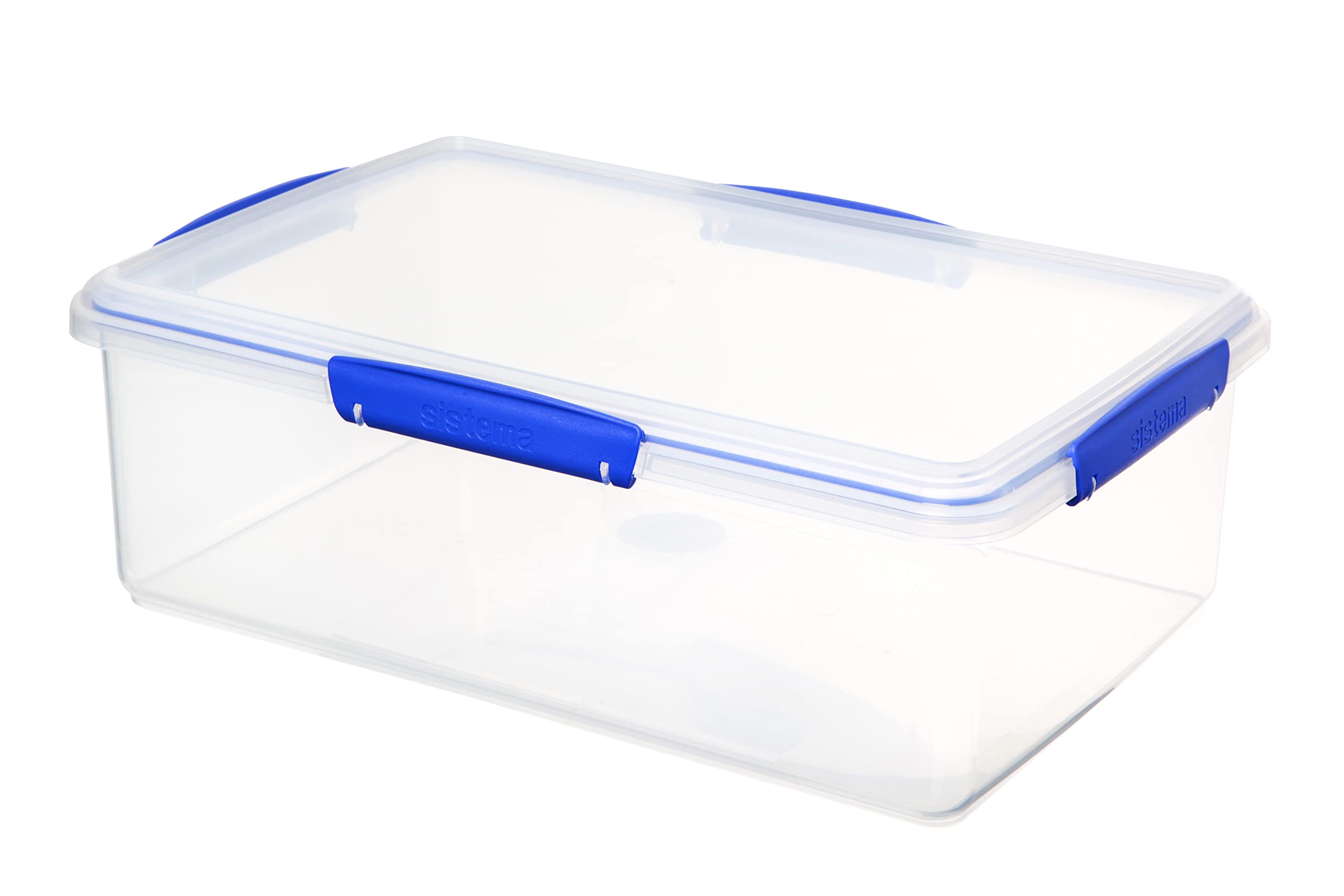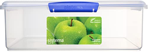 Sistema KLIP IT Rectangular Collection Food Storage Containers keep your produce, leftovers, and other food items fresher for longer. This extra-large storage container has a rectangular shape and modular stacking design ideal for keeping your kitchen organized. This stackable storage container has a lid with easy-locking clips and an extended flexible seal to help keep food fresh. Made from 100% virgin plastic, this BPA- and phthalate-free food storage container is dishwasher-safe when placed on the top rack, microwave-safe without the lids, and safe for storing in fridges and freezers.