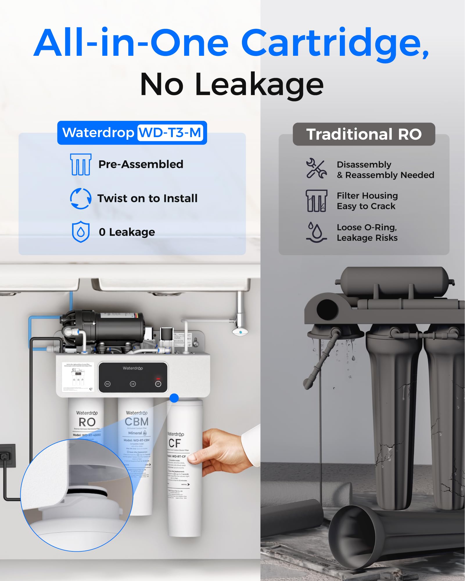 𝐂𝐨𝐦𝐩𝐚𝐭𝐢𝐛𝐥𝐞 𝐰𝐢𝐭𝐡 𝐖𝐃-𝐓𝟑-𝐌: The 1-year replacement filters bundle is designed for the Waterdrop ultra-saving tankless RO system WD-T3-M.