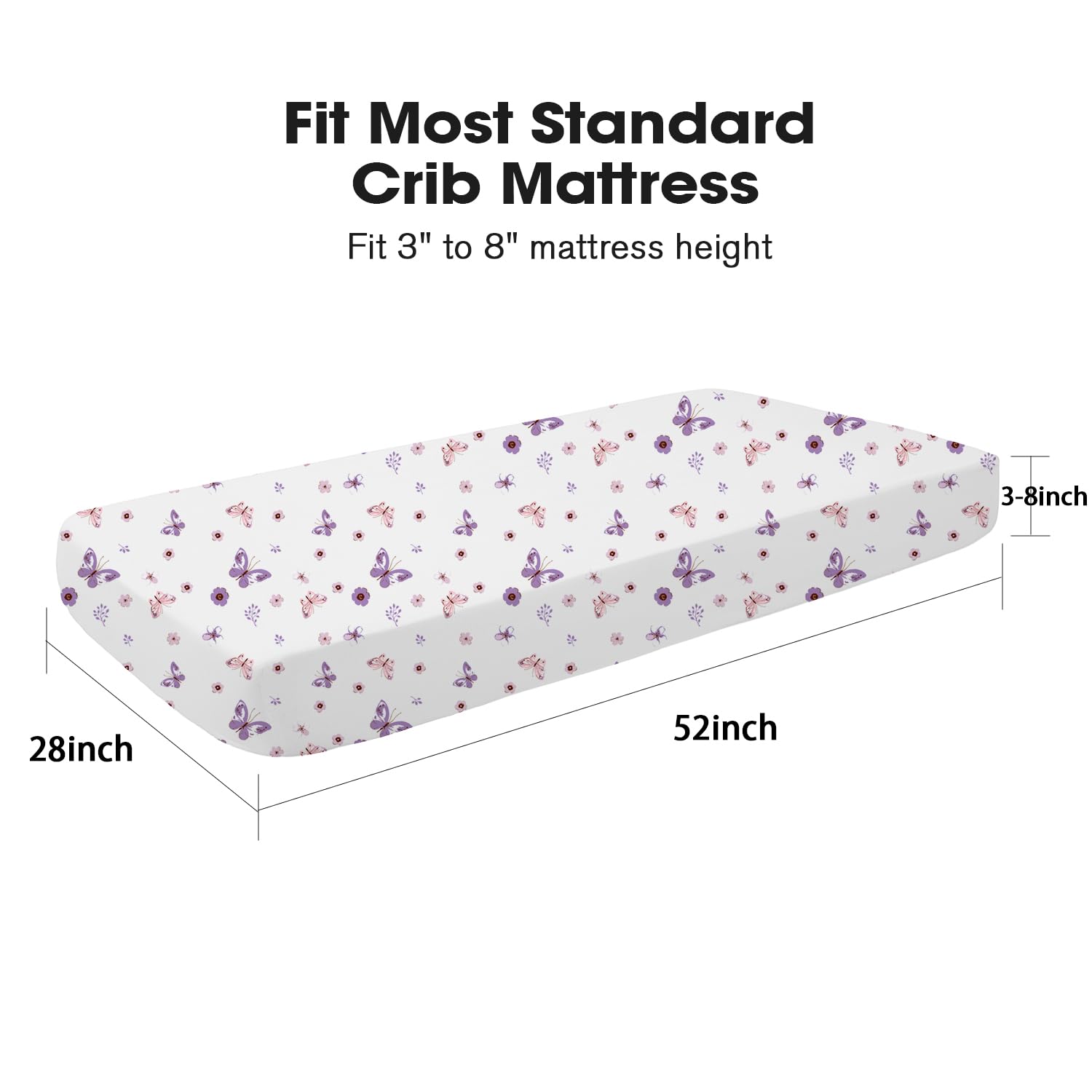 2-Pack Fitted Crib Sheets: Each Little Grape Land Crib Sheets set includes two crib sheets designed to perfectly fit standard nursery crib mattresses measuring 52” x 28” with a height range of 3” to 8”.