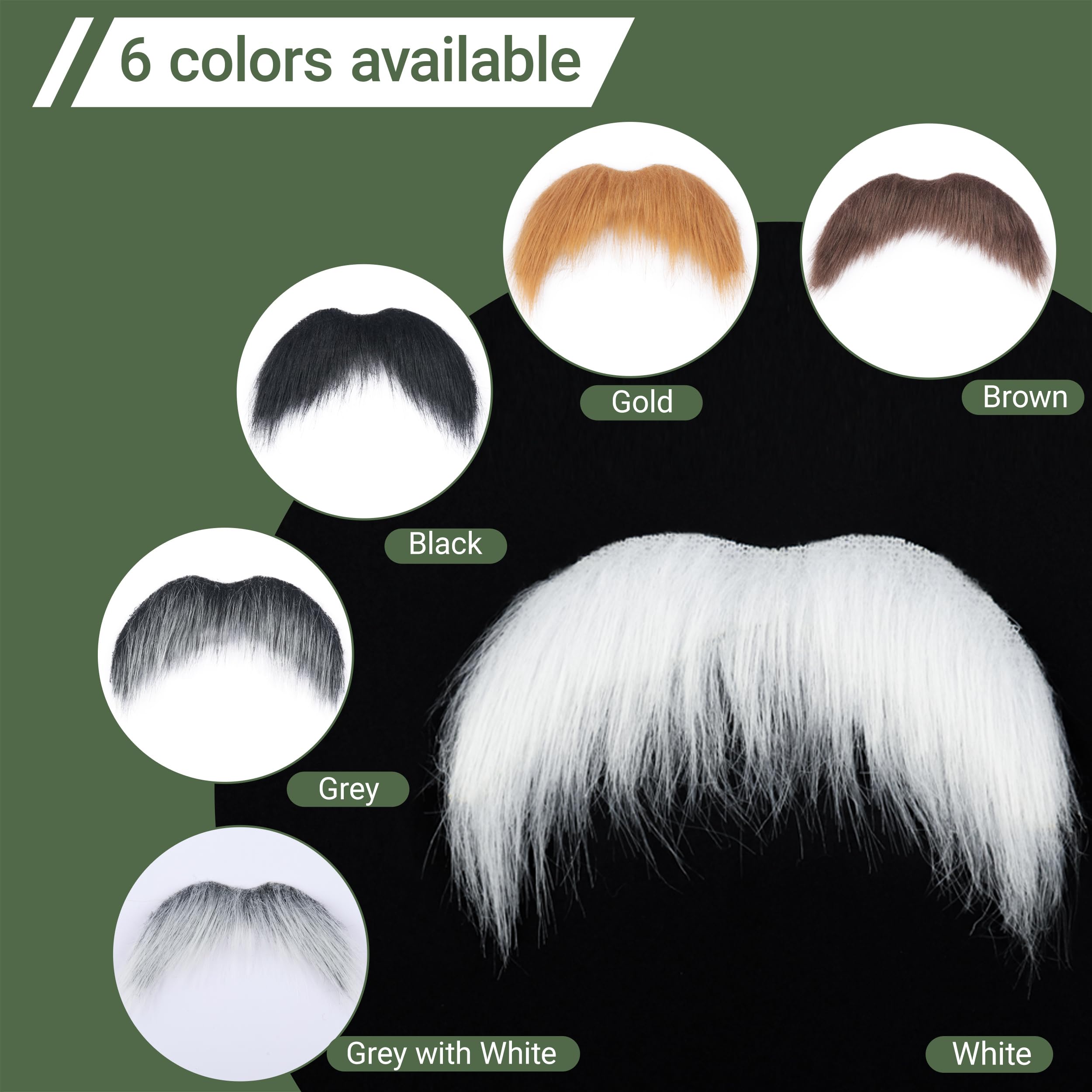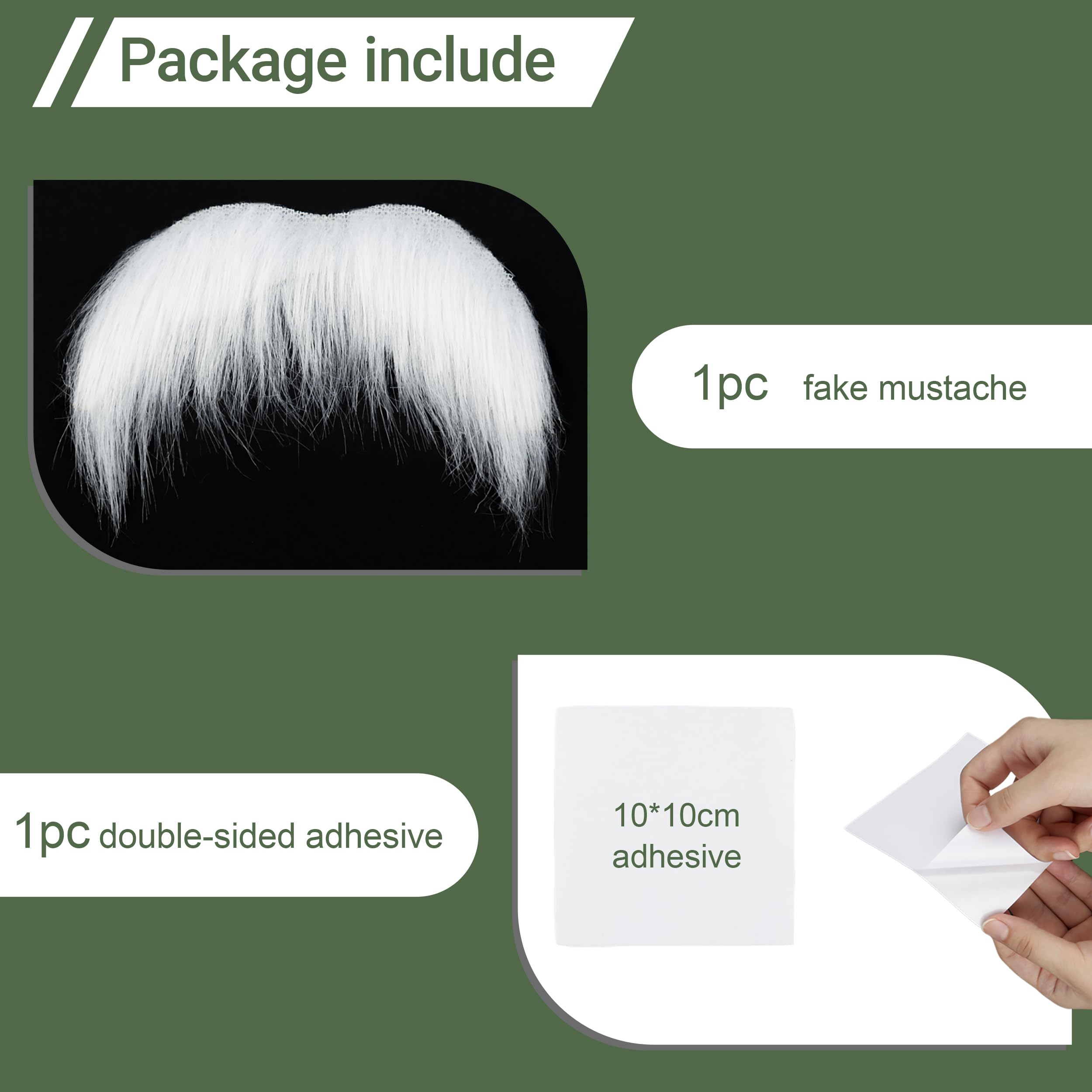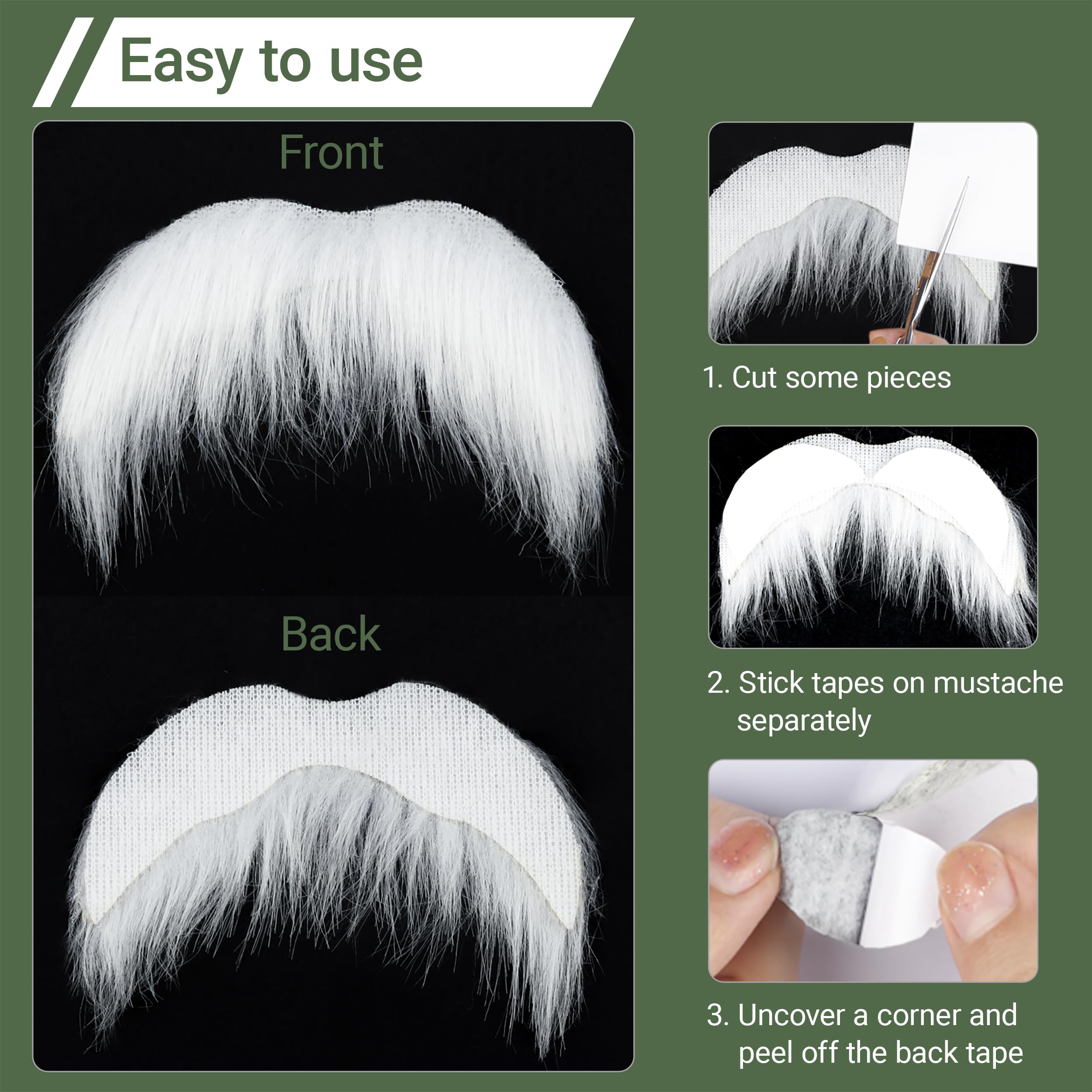 Realistic fake mustache and beard; self-adhesive white false facial hair; men classic halloween costume accessories