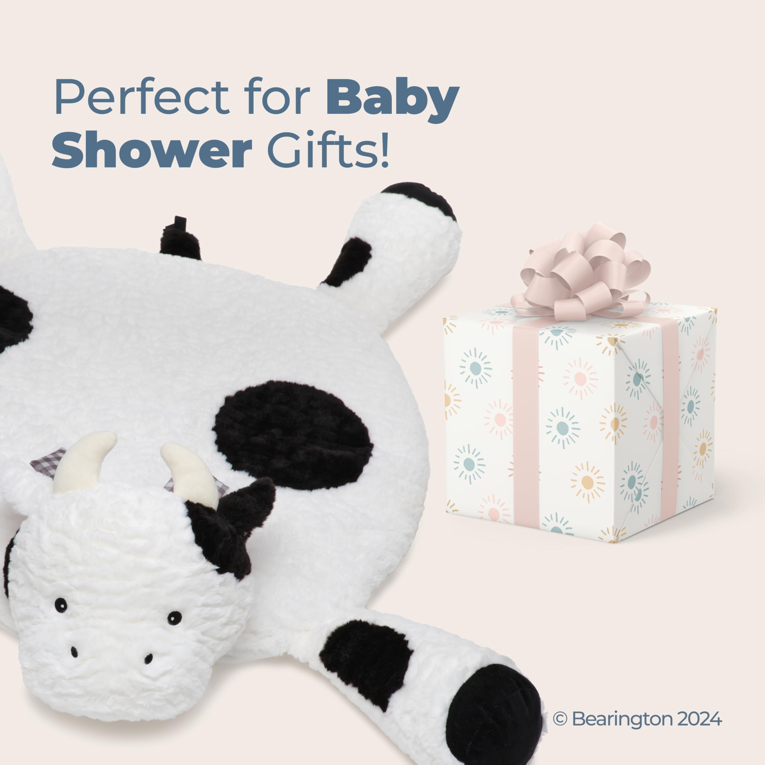 Tummy Time Delight: Make tummy time fun with the Bearington Lil' Gilly Cow Tummy Time Mat. This 30" x 30" cow-themed baby mat blends comfort and stimulation, perfect for any baby cow nursery decor and sure to boost your little one's growth
