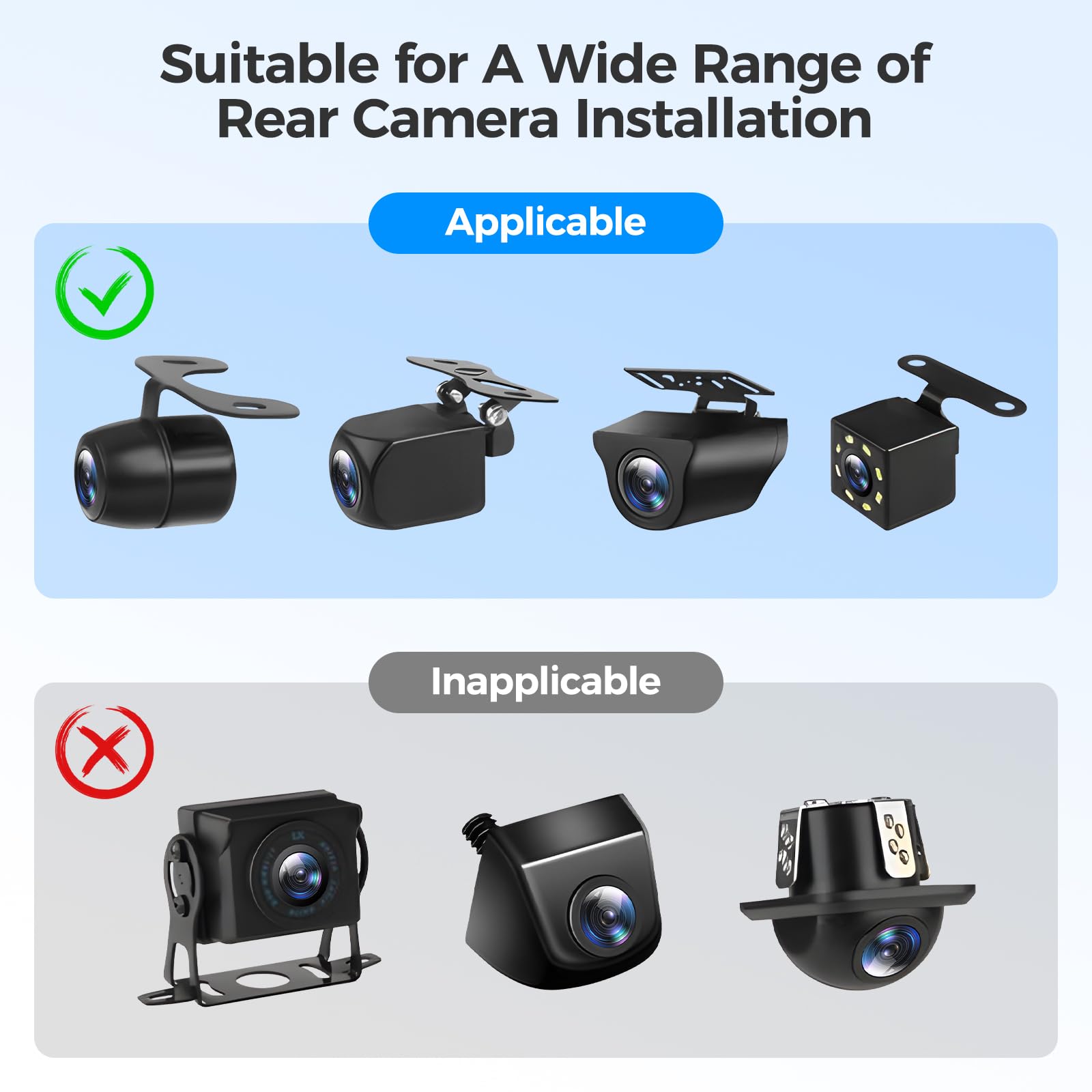 Perfectly compatible with most types of car rear view camera such as dashcam.