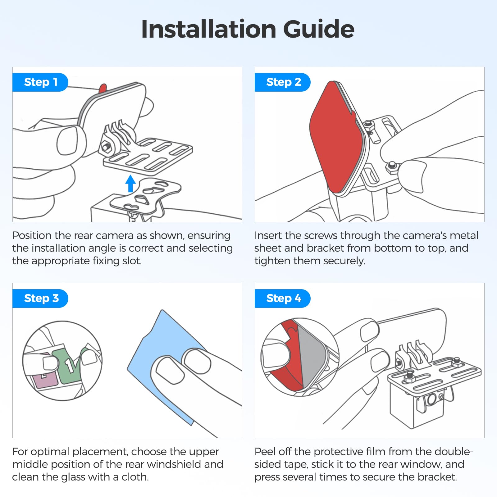 Rear window windshield bracket compatible with AZDOME rear camera and most rear camera.