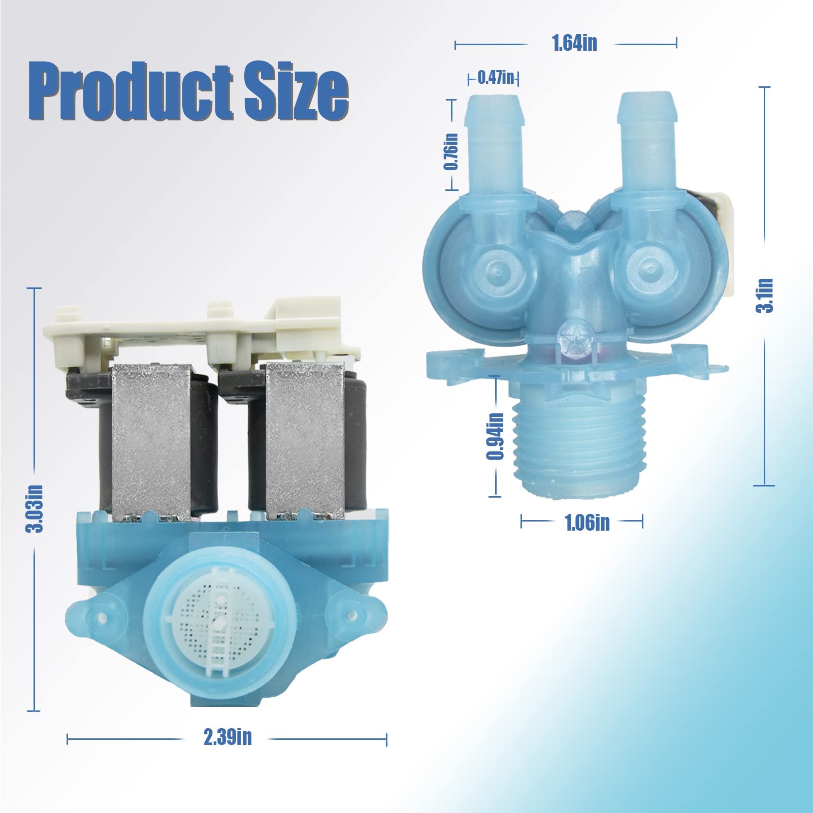 【Durable Use & Fixable Symptoms】-- This W11316256 Washer Water Valve Replacement is made from more thickness and durable materials, so it can serve for a longer time. It mainly fixes the following symptoms: Not fill with water; Not stop filling with water; Water leakage.