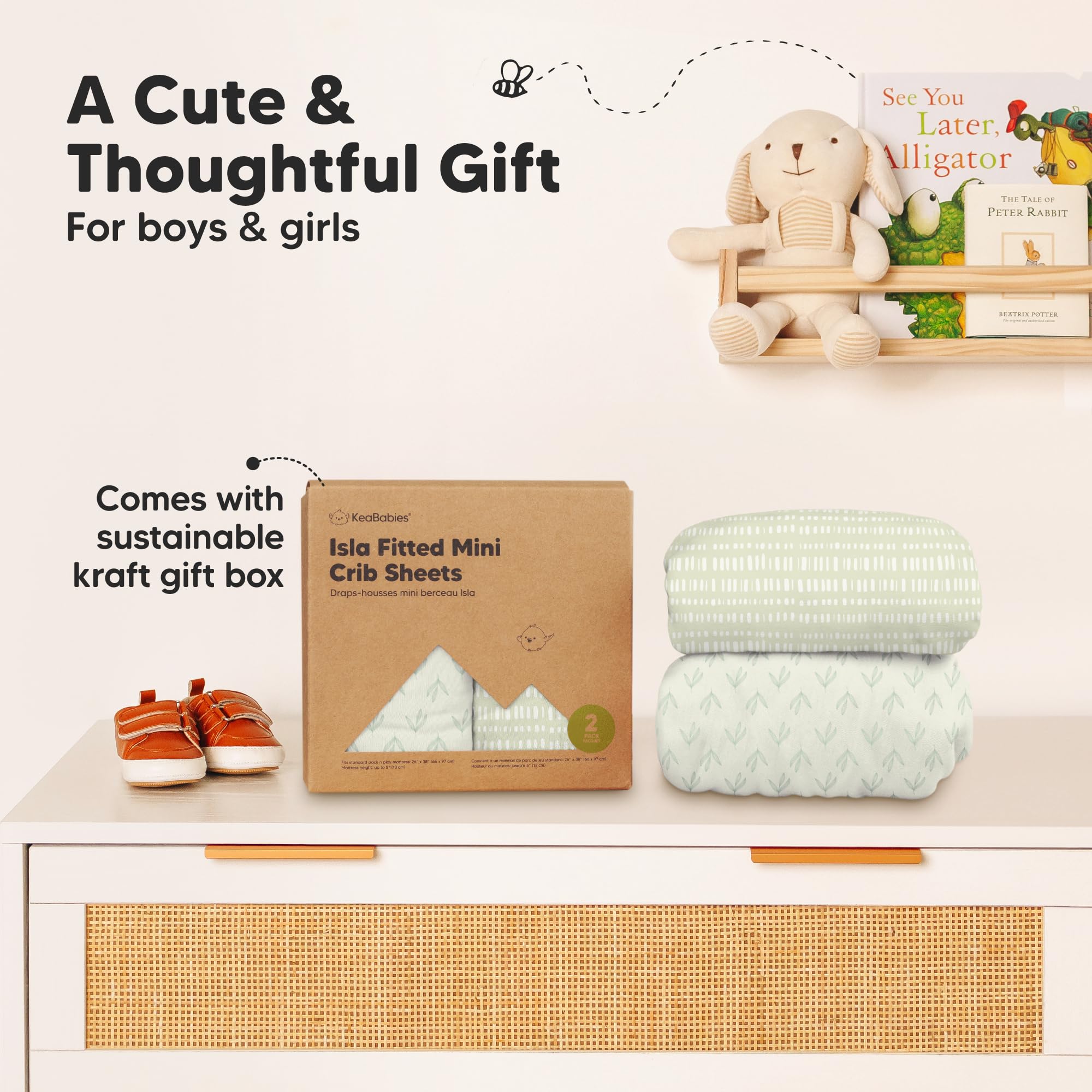 Neutral, Gentle on Skin - The KeaBabies Isla Mini Crib Sheet Fitted is buttery-soft and extra gentle for baby's delicate skin. The neutral designs on these baby-safe, pack n play sheets are suitable for baby boys and girls.