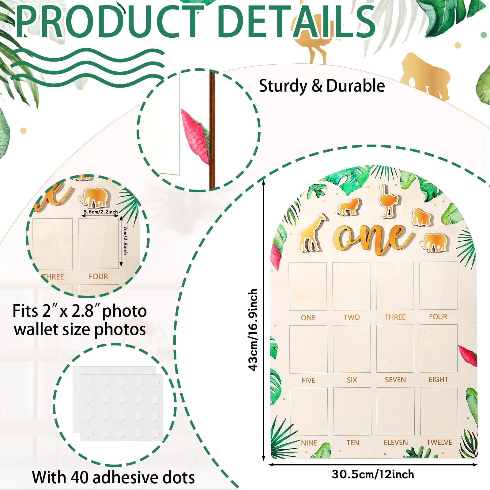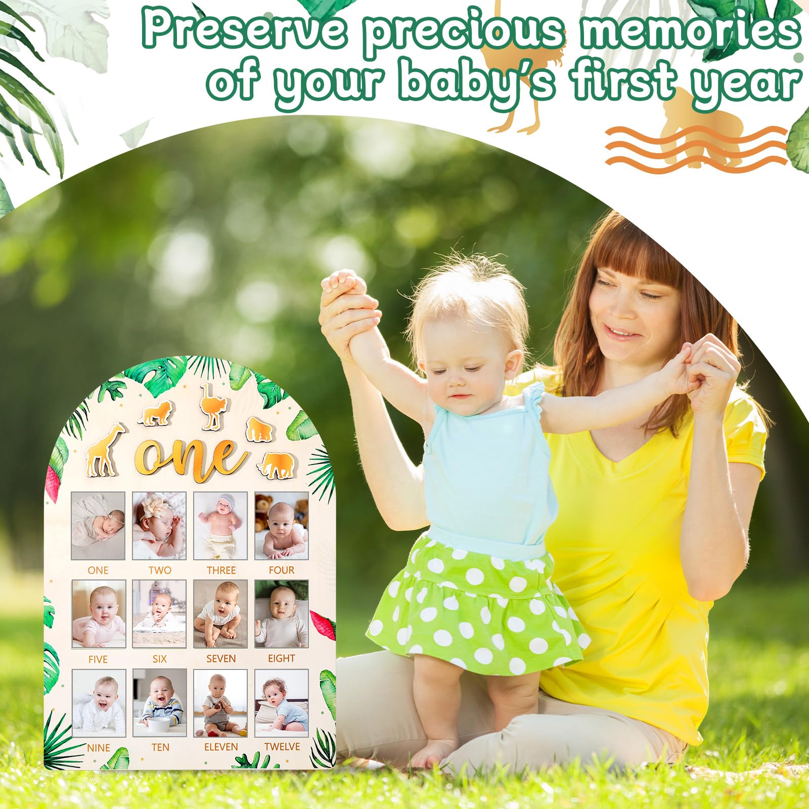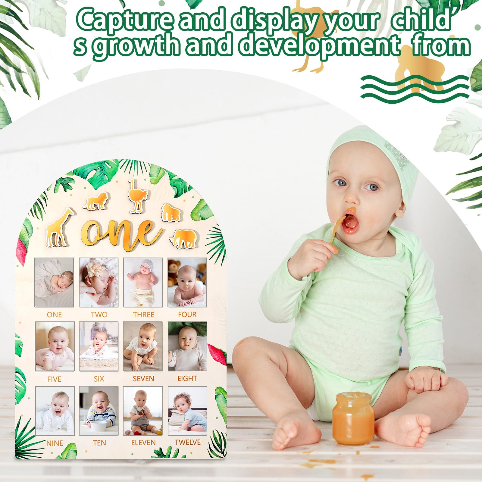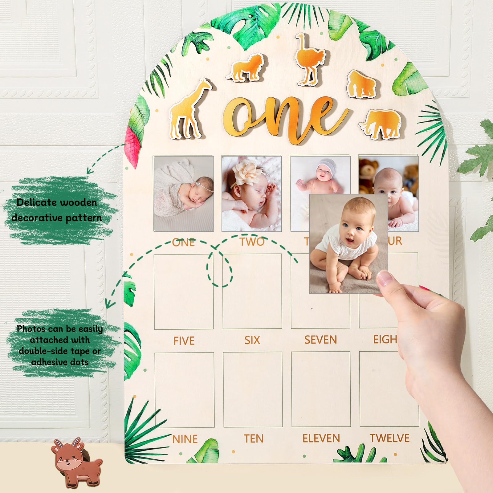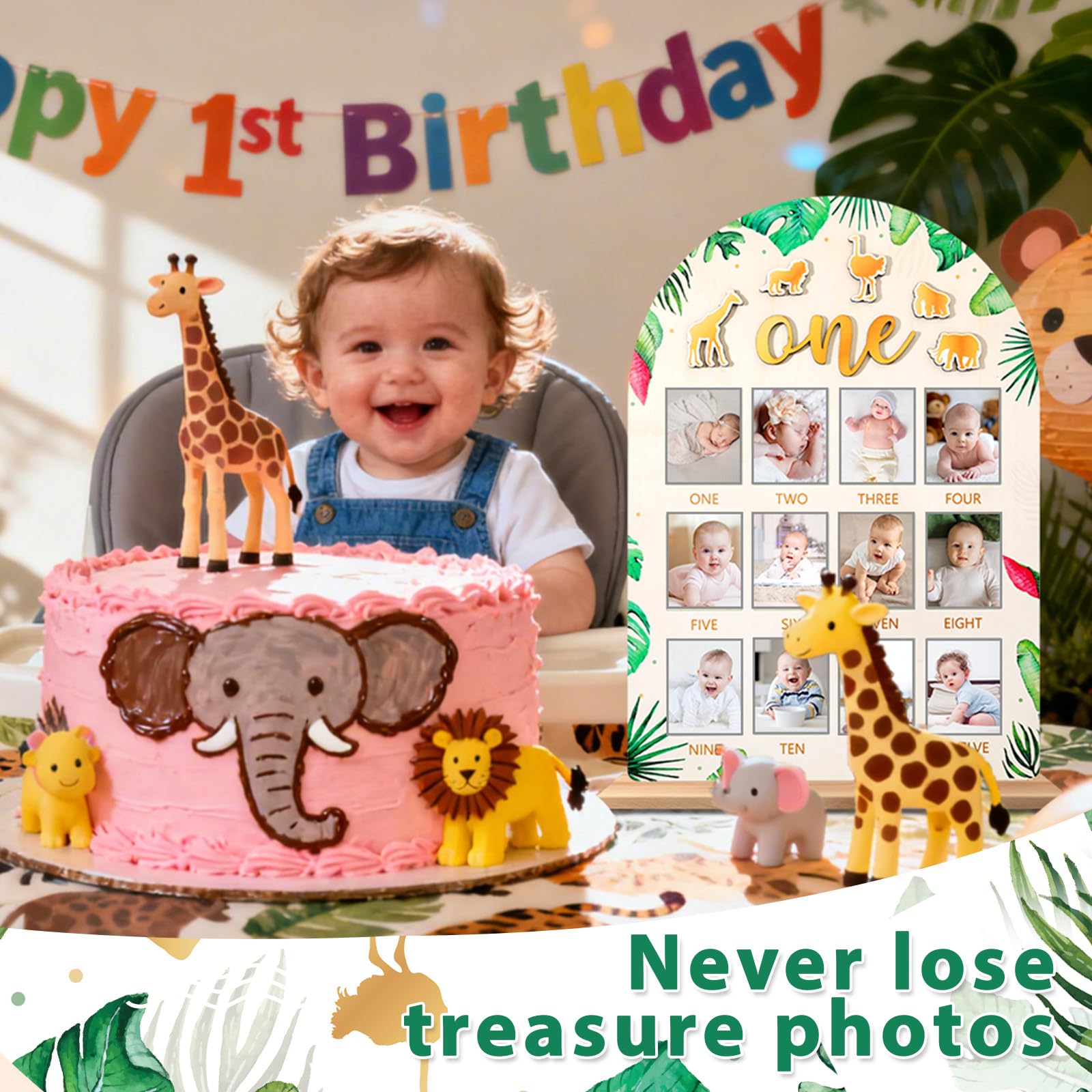 Package Includes: This set includes one 13.6" × 17" × 0.4" wild animal first birthday board and two sheets of adhesive dots for effortless photo mounting. Designed to hold 12 monthly milestone pictures, it works well as a monthly milestone picture frame, a baby first year photo frame, or a charming wild animal birthday banner for displaying your baby’s first-year memories.