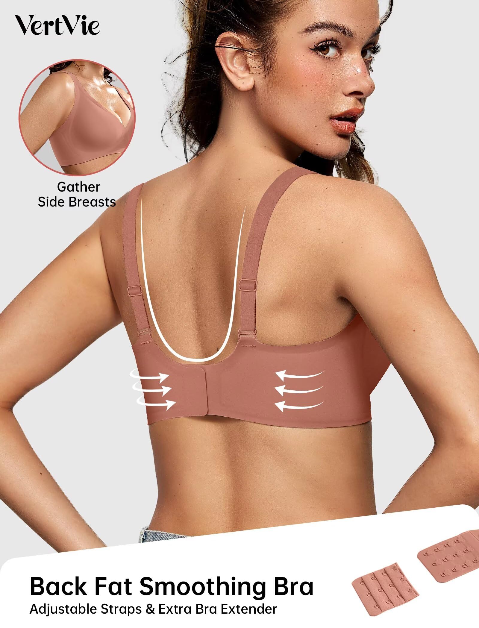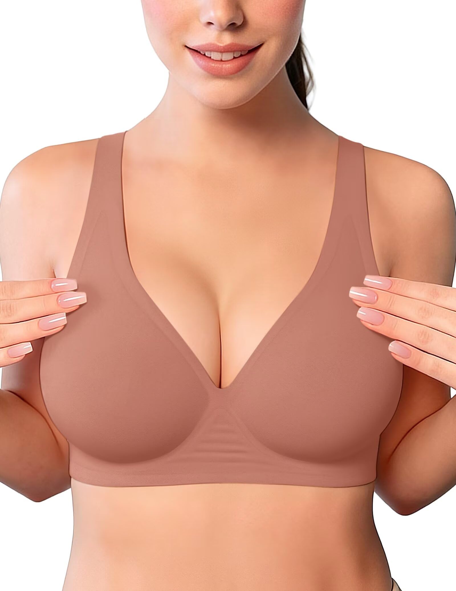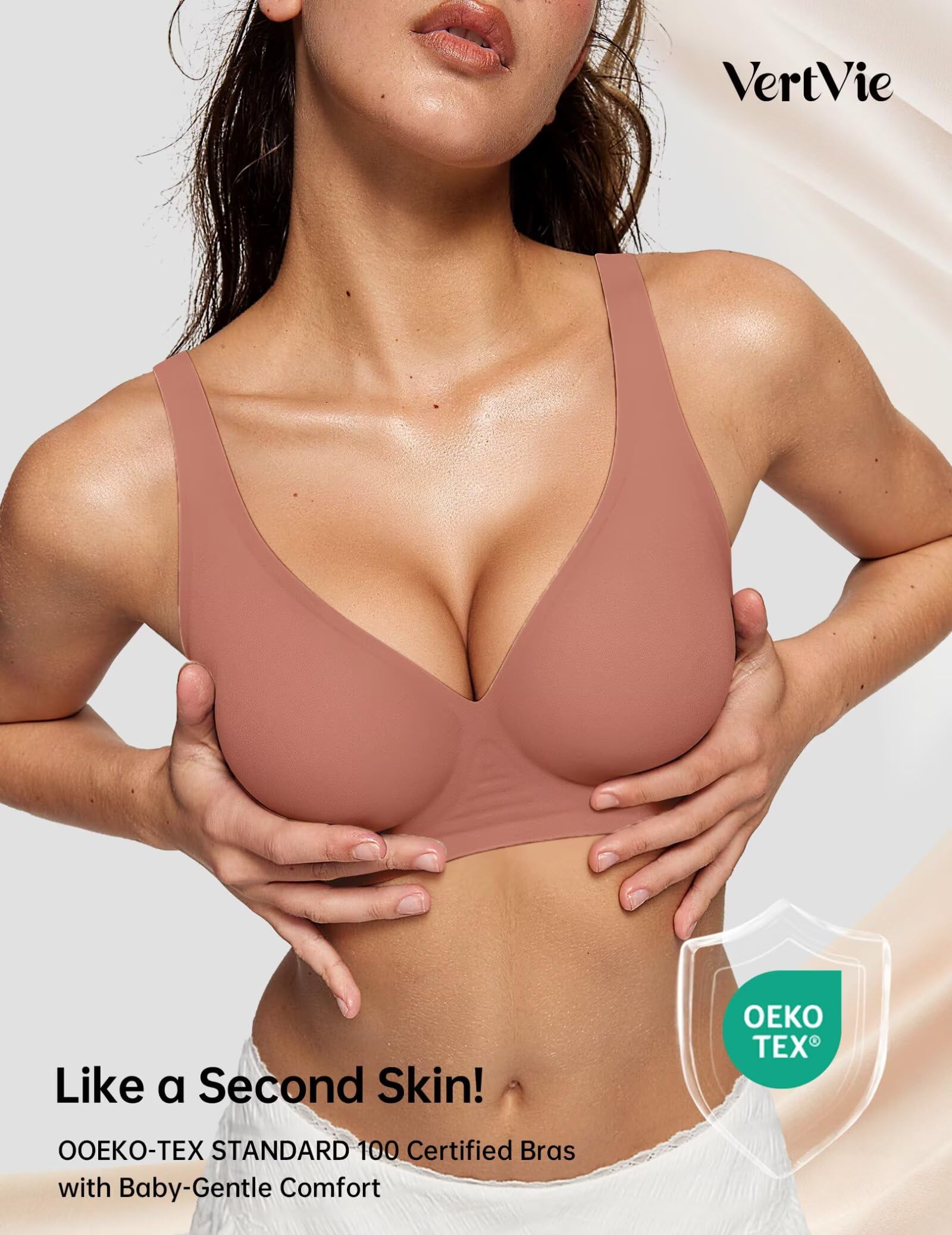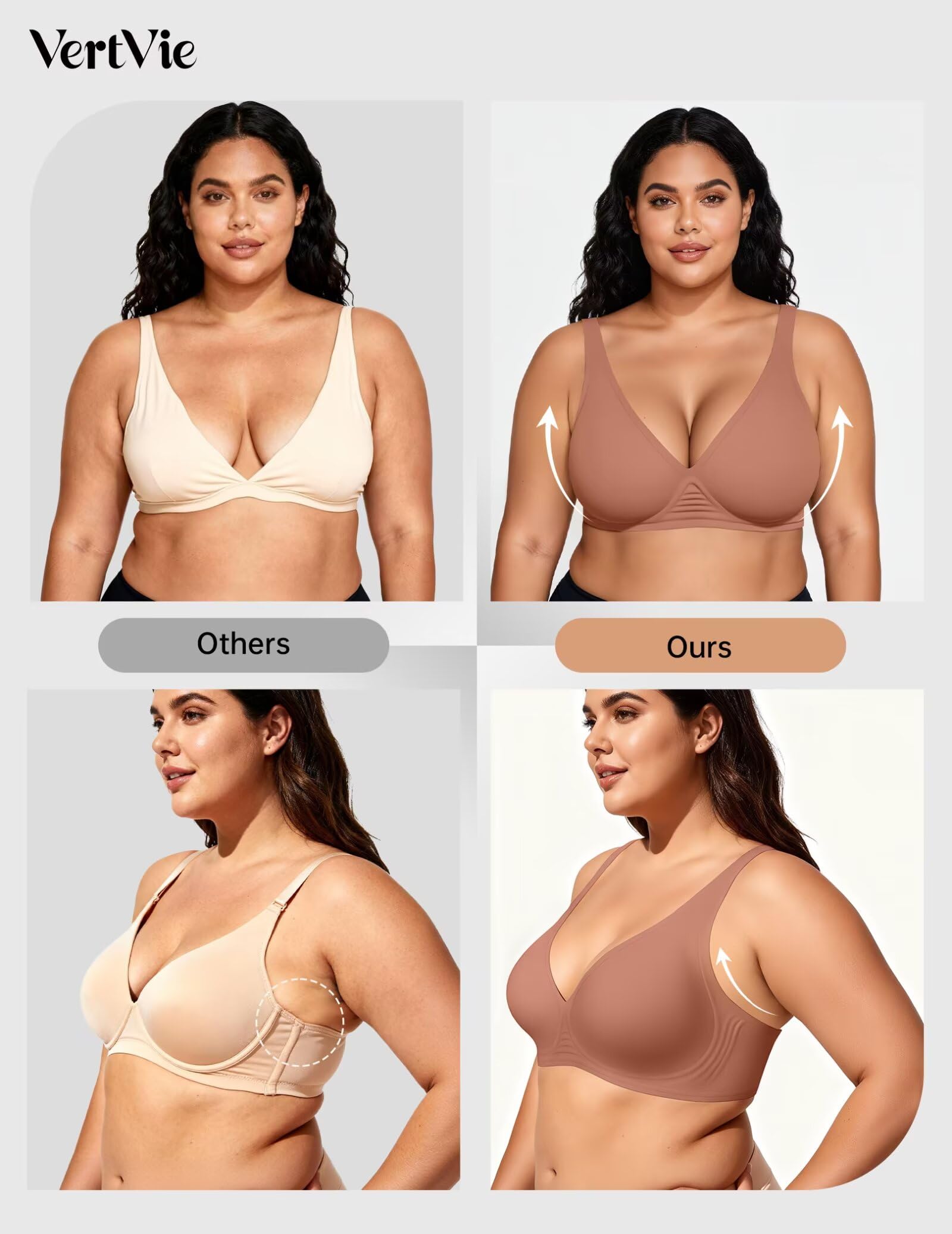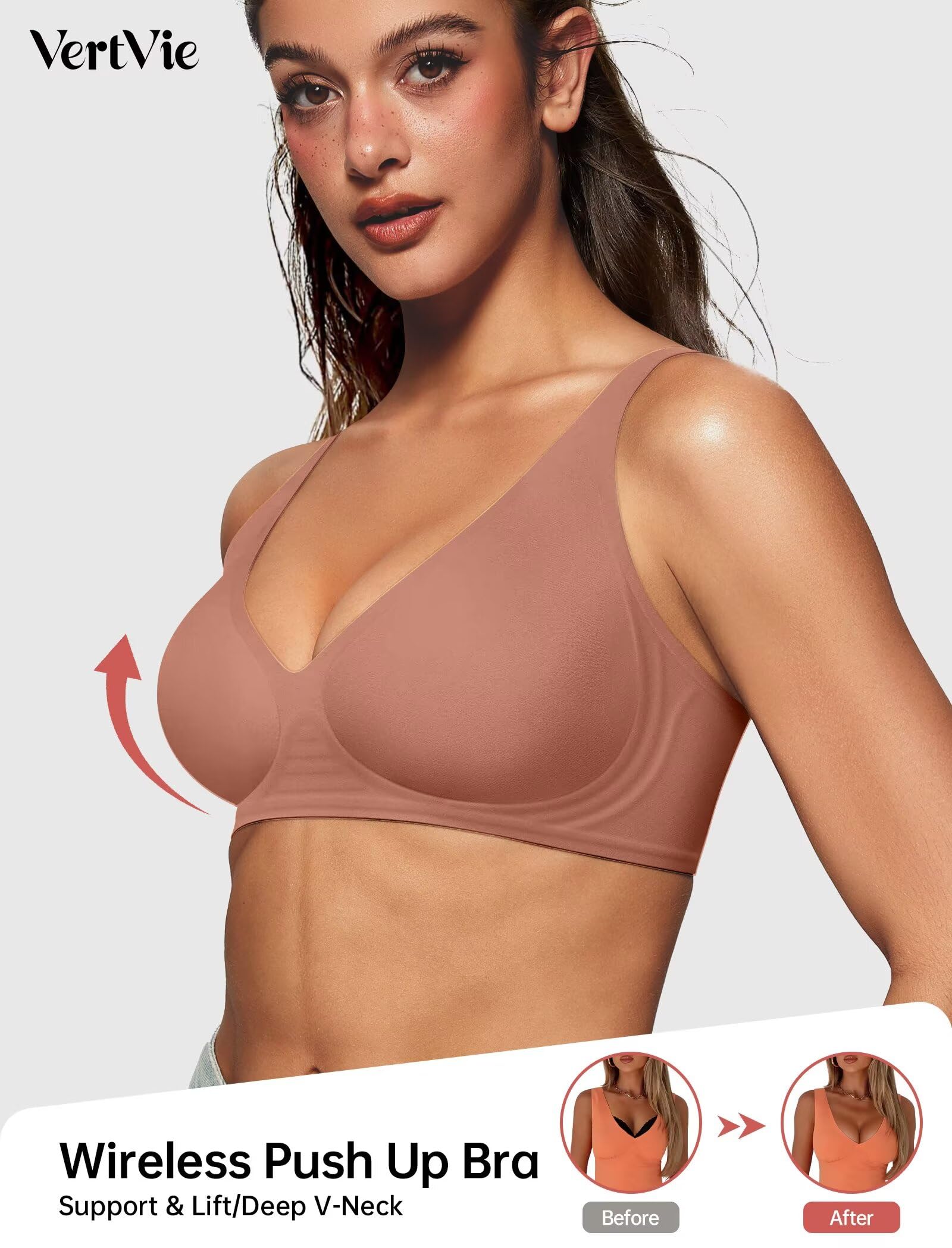 【Sexy Deep V Neck Bras】Discover the allure of our stylish plunge bra! Designed to enhance your natural shape, this full coverage bralette features a plunging neckline that offers a sexy, elegant look and enhances your natural cleavage. Its design makes it perfect for pairing with low-cut tops and dresses, adding a touch of sophistication to your outfit. The VertVie wireless comfort bra will be your new favorite style with its smooth, invisible look.