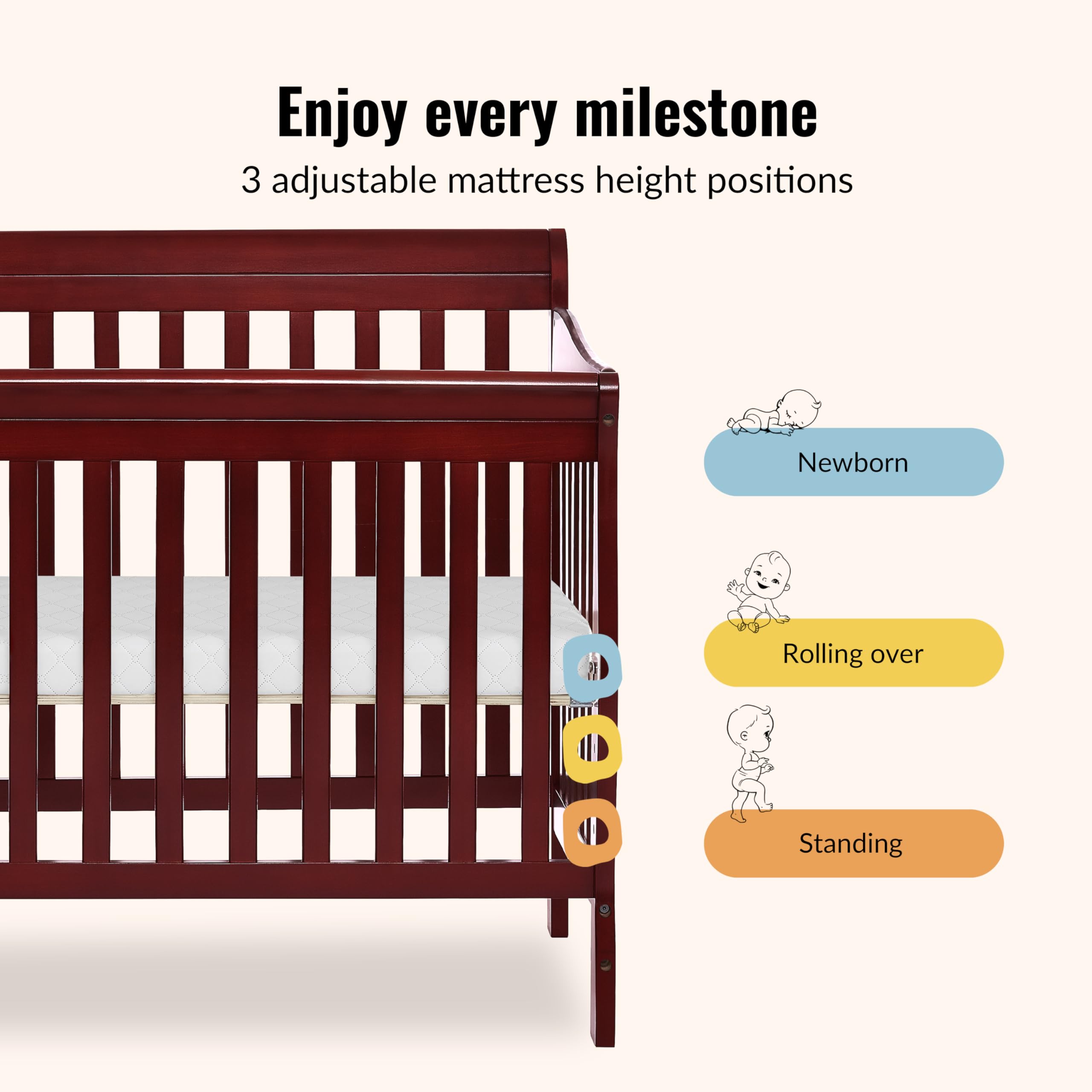 Sturdy Craftsmanship: Built from New Zealand pinewood for durability and elegance, with versatile finishes designed to match any nursery style. Includes 3 adjustable mattress height positions to adapt as your child grows