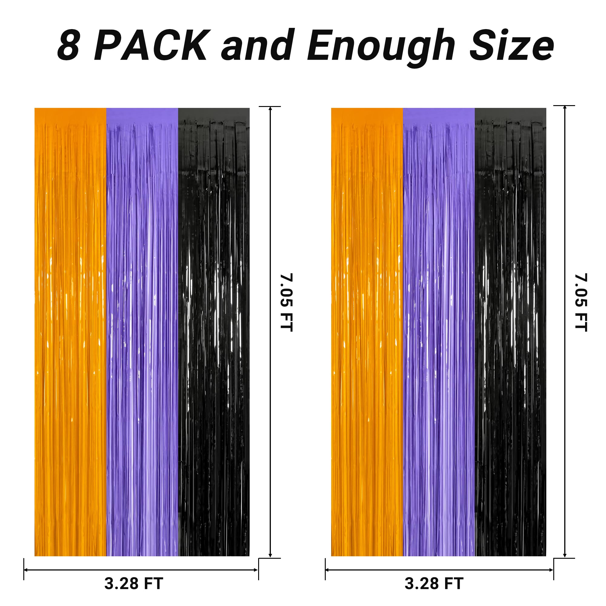 Package Includes: You will receive 8 pcs orange purple and black foil streamers, each measuring 3.28 ft x 7.05 ft, oversized to be cut to your desired length.