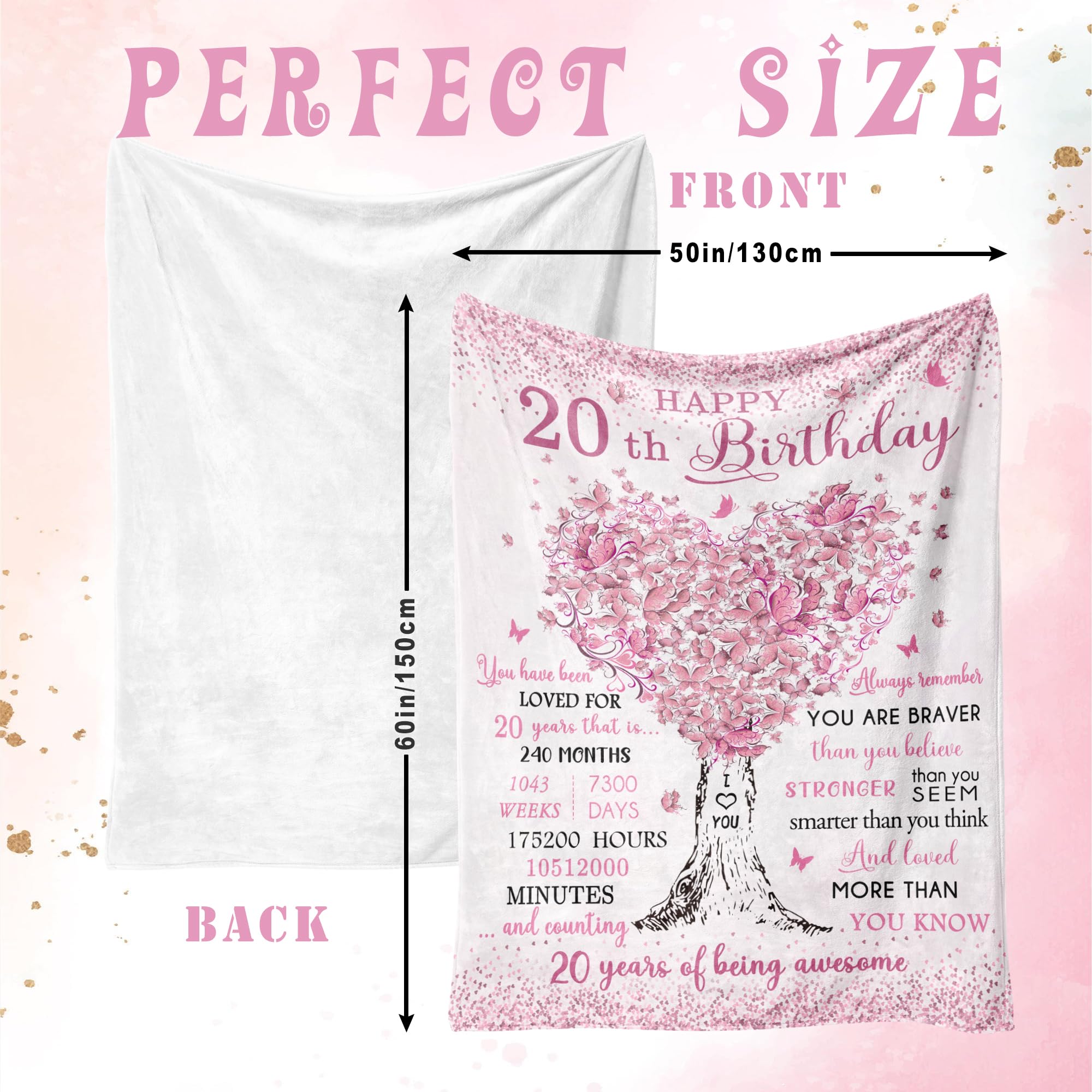 【Gift for Any Occasion】: The 20th Birthday Blanket is the perfect way to celebrate this special milestone. More than just a gift, it’s a cozy companion for everyday comfort.Whether she’s lounging on the sofa, snuggling up in bed, or daydreaming about the exciting years ahead, this blanket surrounds her with warmth and love.Ideal for birthdays, celebrations, or just because, its soft design and heartfelt message make it a cherished companion