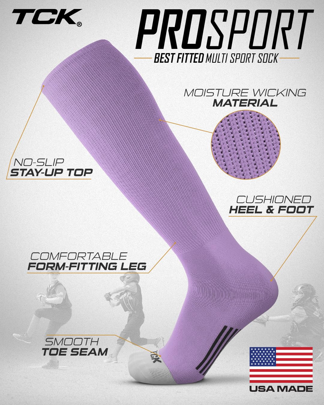 CLASSIC MULTISPORT ATHLETIC SOCKS: The Prosport is the gold standard for the classic athletic tube sock. This iconic sock has been produced for over a decade and has graced the feet of many top athletes. Hitting just below the knee, this sock is ideal for baseball, softball, football, field hockey and more! Available in over 20 team colors and 5 precise sizes, the Prosport is the sock to elevate your game to the next level.