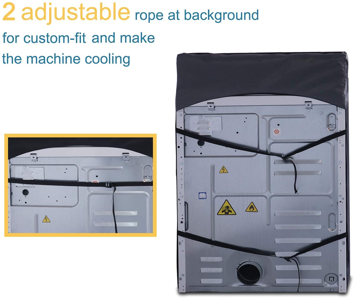 Durable Material - Made of high denisty fabric oxford, black coated polyester fabrics. which is waterproof, dust-proof, this washing machine cover can protect your washer/dryer away from various weather conditions, such as rain, sand storms, sun and snow etc.