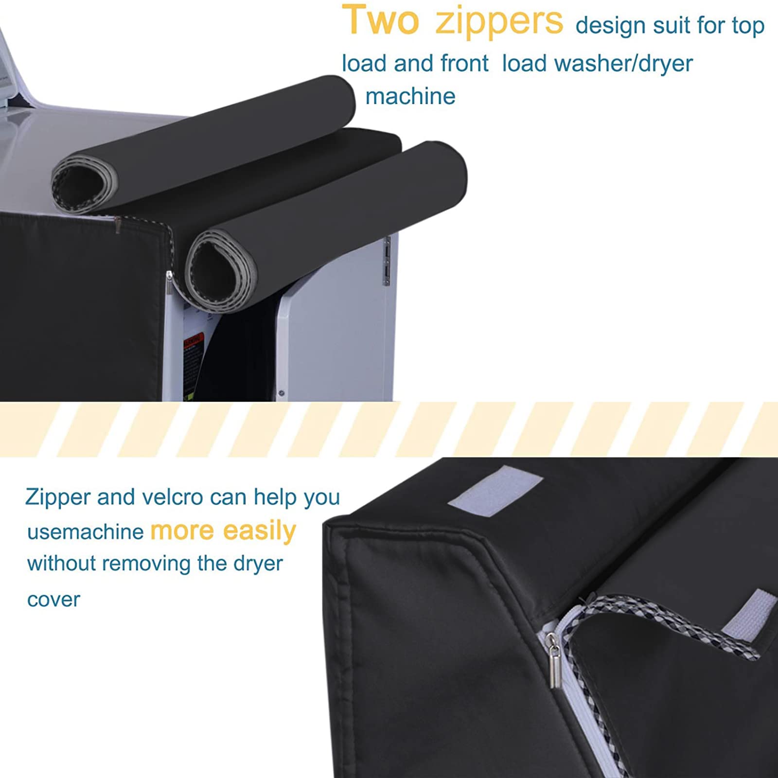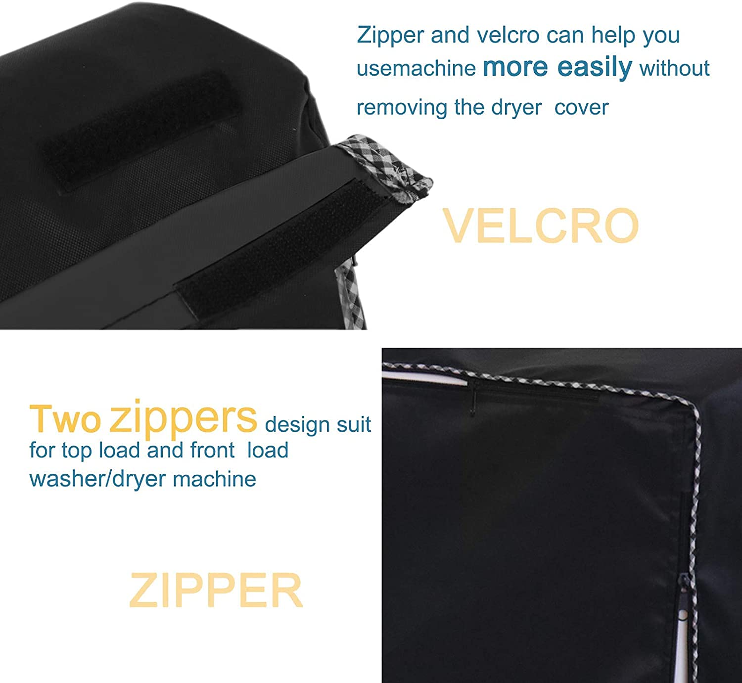 Easy To Use--The cover fit for top load or front load wacher/dryer machine. The cover with zipper and velcro design that lets you open the machine without removing the washing machine cover,very simply and convenient.