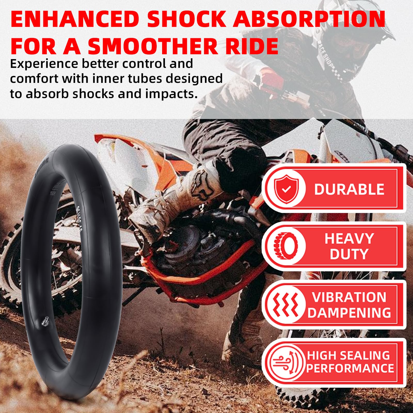 Enhanced Shock Absorption for a Smoother Ride - Experience better control and comfort with inner tubes designed to absorb shocks and impacts. Whether you're navigating rocky trails or taking jumps, these tubes reduce vibrations and deliver stable performance on rough terrain.