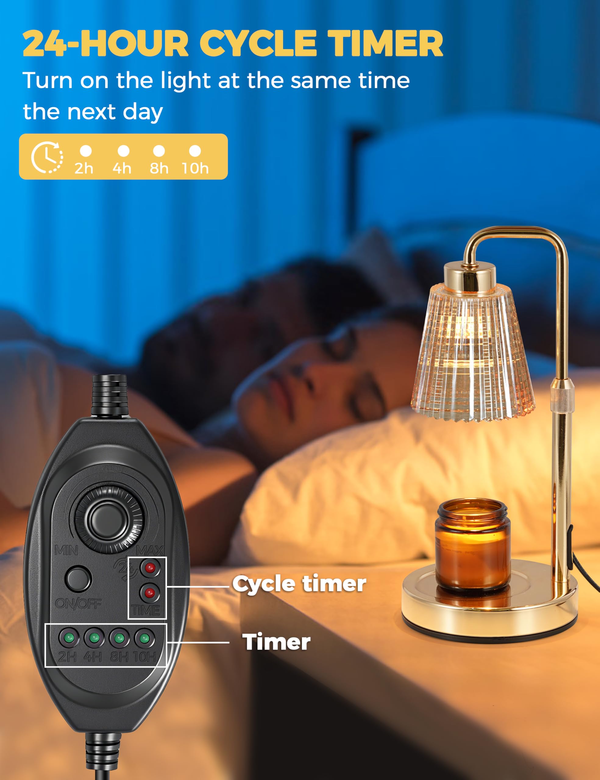 Fully Dimmable and 12-Hour Timing Function: Enjoy complete control over the ambiance with our dimmable knob, offering unrestricted dimming for personalized melting speeds. Additionally, our Candle+Warmer+Lamp boasts a convenient timer function, ensuring a perfect atmosphere tailored to your preferences, facilitating uninterrupted sweet dreams.
