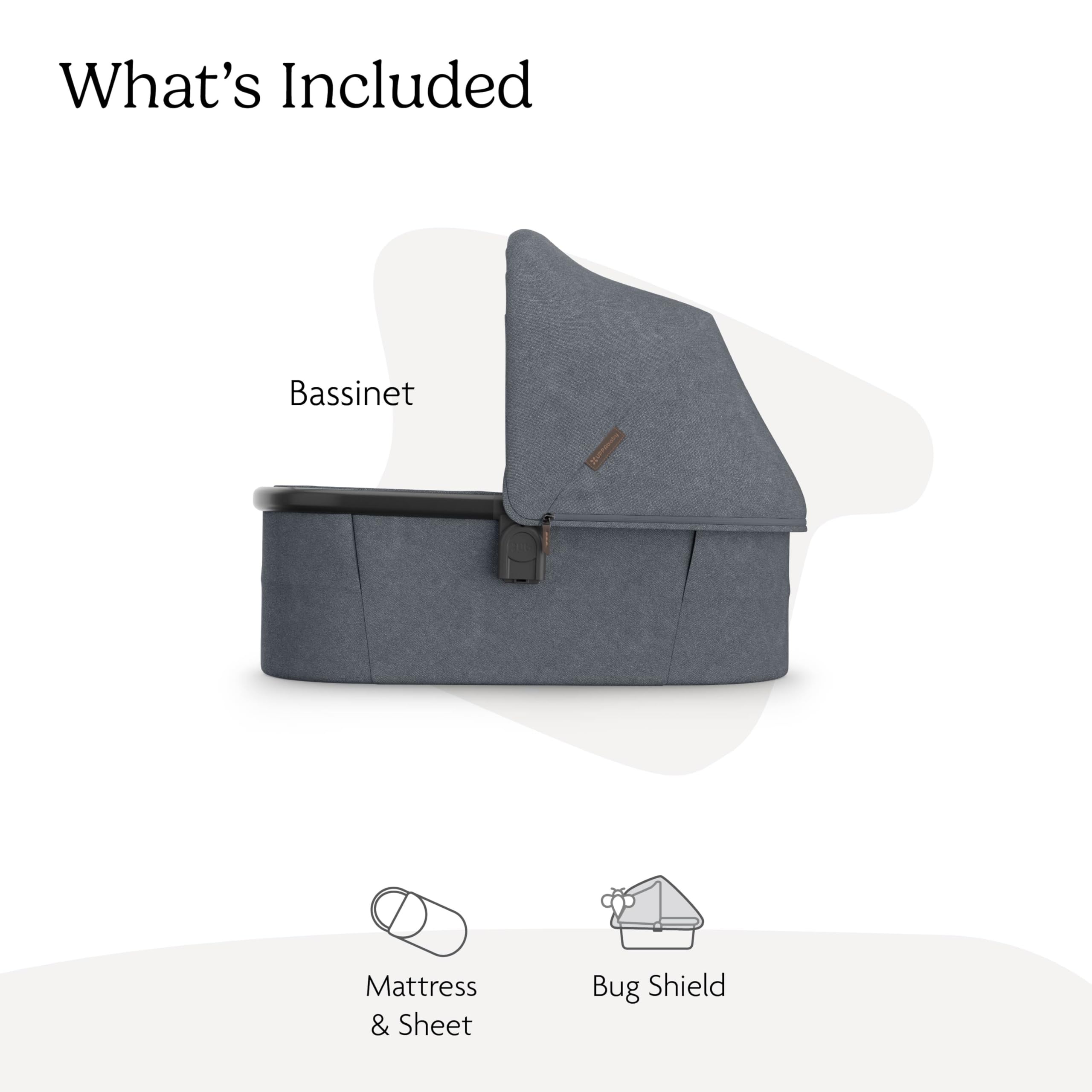 Transform your Vista, Cruz, or Ridge into a safe and stylish pram ideal for your newborn. Whether for naps on the go or overnight sleeping, our Bassinet allows your baby to lie completely flat. The Bassinet V3 has enhanced features including greater ventilation, easy access to baby, and a breathable mattress for safe sleep. - Extendable, UPF 50+ sunshade and mesh panels for air flow - Carry handle with an effortless one-hand stroller release for easy on-and-off attachment - Zip-out, water-repellent inner liner and boot cover are easy to remove and clean - Direct attachment to stroller with indicators for extra security - Included Bug Shield to protect from outdoor elements - Fits directly onto Bassinet Stand Accessory - GREENGUARD Gold certified to support healthier air quality & low chemical emissions + What is Included - Bassinet - Bassinet Bug Shield - Mattress - Mattress Cover.