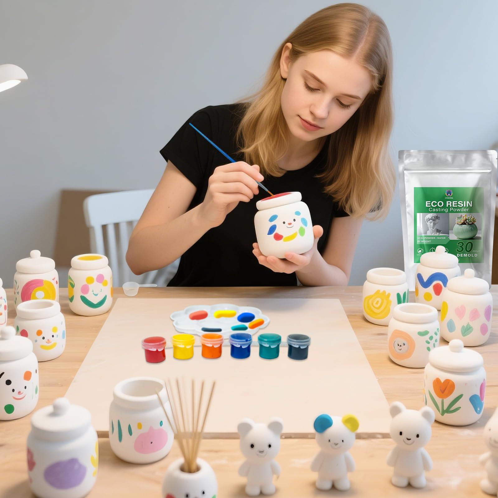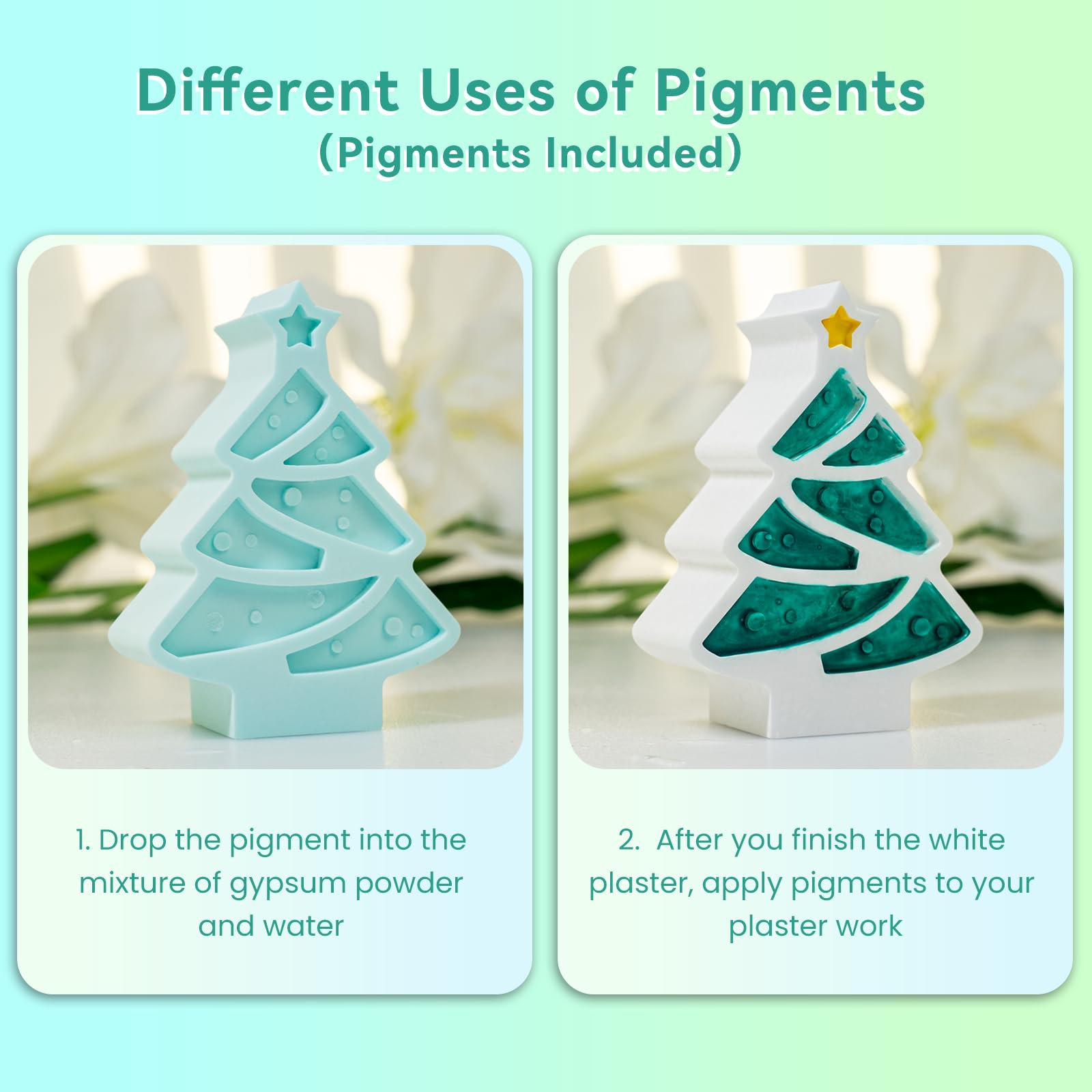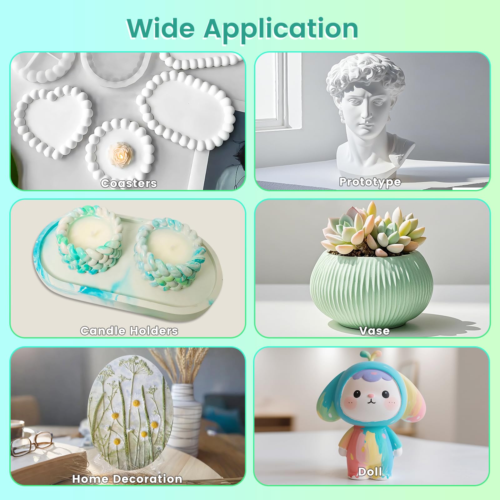 Colorable & Customizable: We are equipped with water-based acrylic coating, and you can use a dropper to squeeze some into the mixture you have mixed. This way, the color of the finished product will become lighter. For example, deep green can turn into light green, or you can directly apply paint to your finished product after making gypsum powder, which is particularly suitable for some gypsum figurines etc